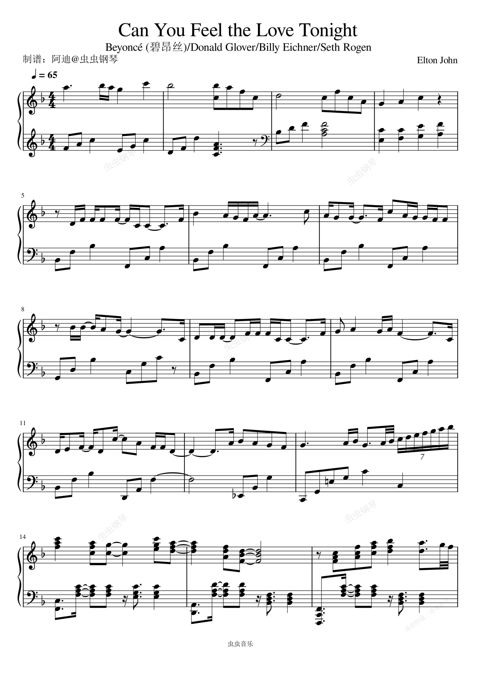 钢琴谱:Can You Feel the Love Tonight (From "The Lion King"|Soundtrack Version) - Beyoncé (碧昂丝)/Donald Glover/Billy Eichner/Seth Rogen