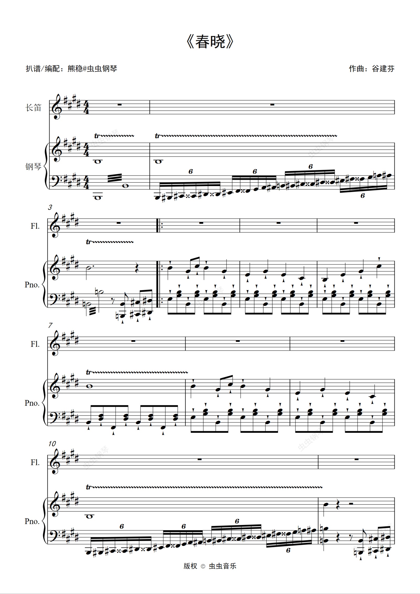 钢琴谱:《春晓》E调高度还原版伴奏谱