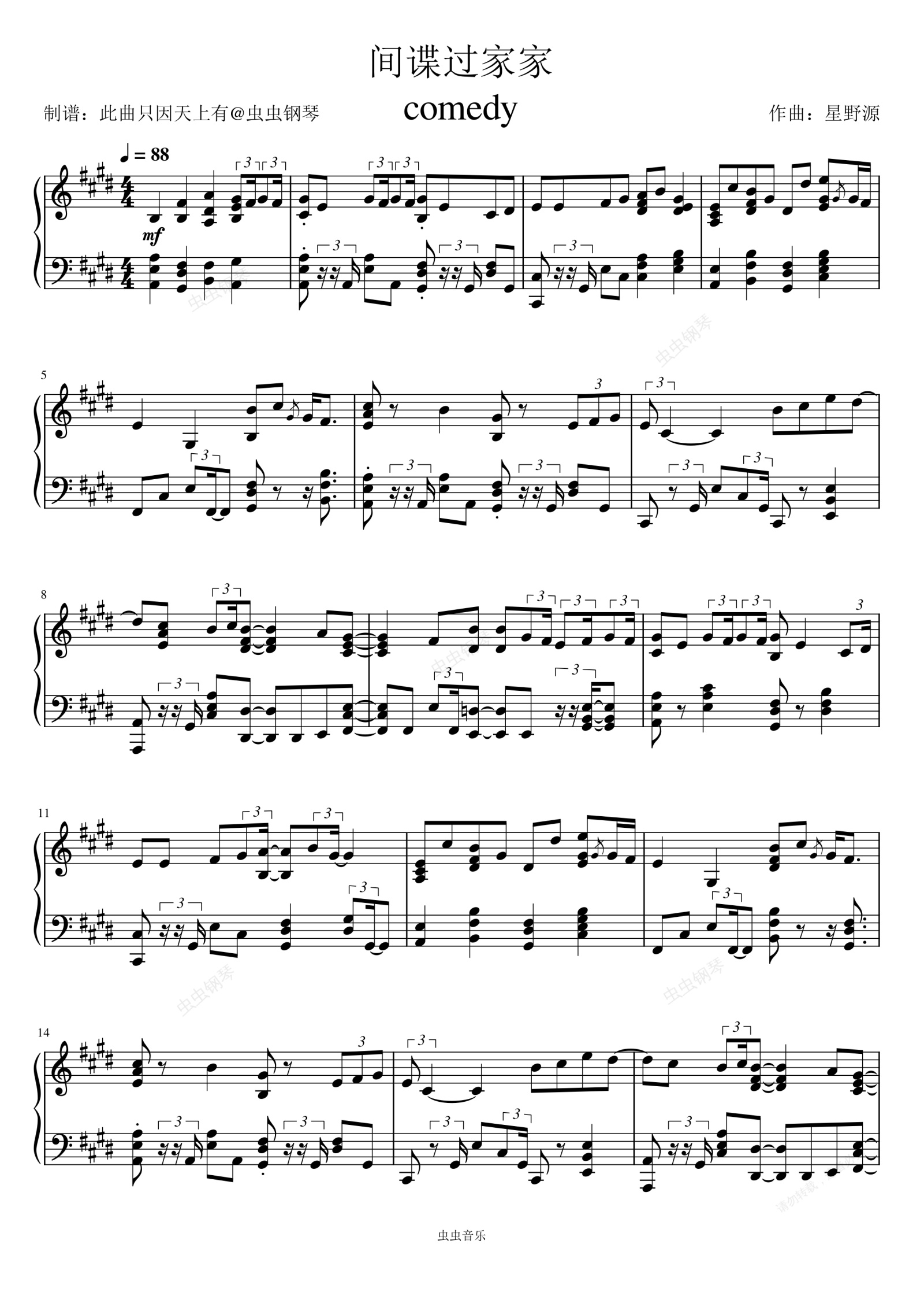 钢琴谱:间谍过家家comedy-星野源
