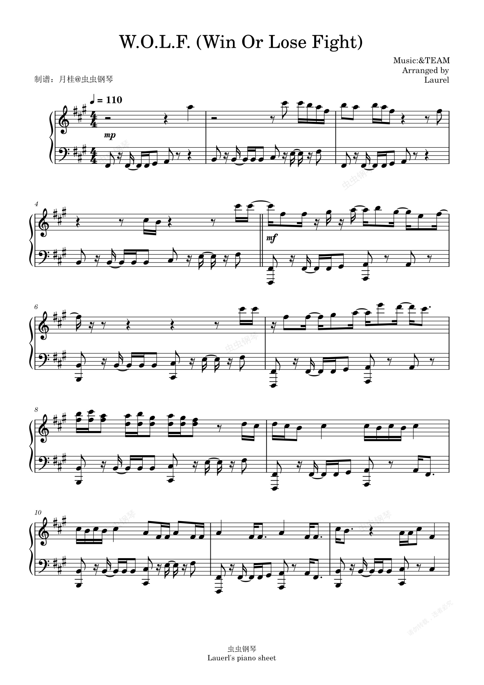钢琴谱:W.O.L.F. (Win Or Lose Fight)-&TEAM单曲