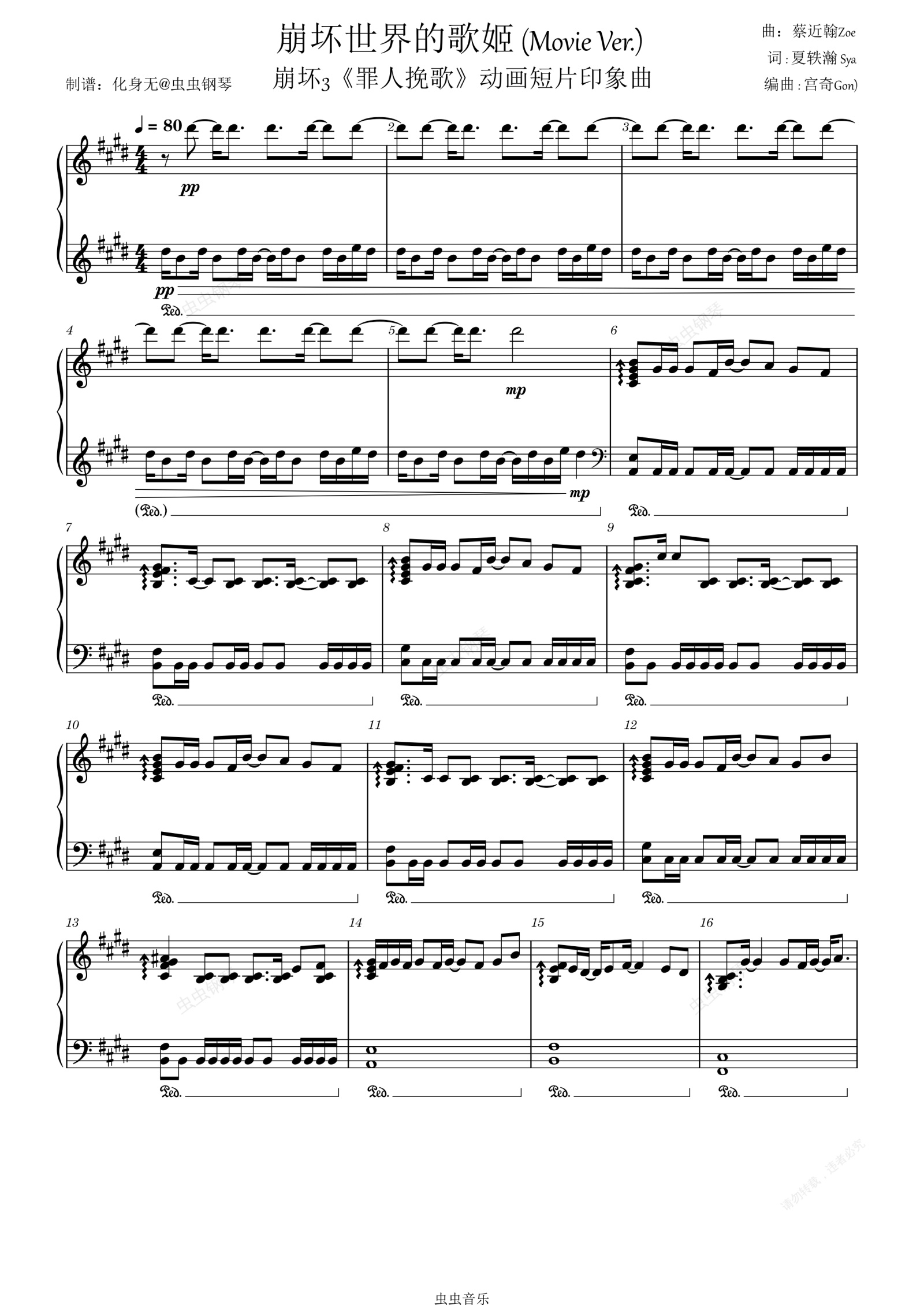钢琴谱:崩坏世界的歌姬 (Movie Ver.)  - 崩坏3《罪人挽歌》动画短片印象曲
