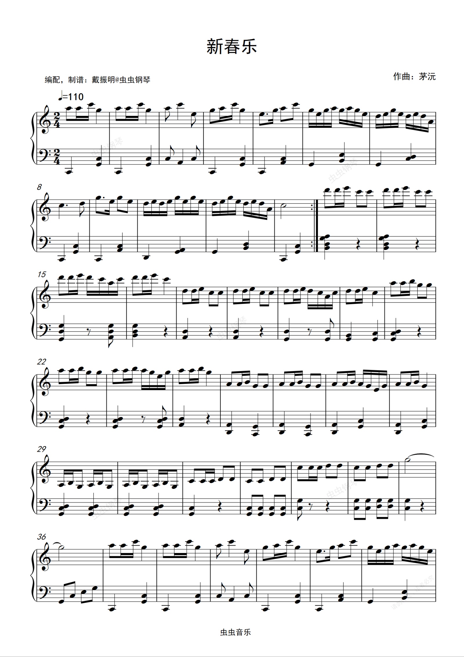 钢琴谱:小提琴新春乐c调钢琴版