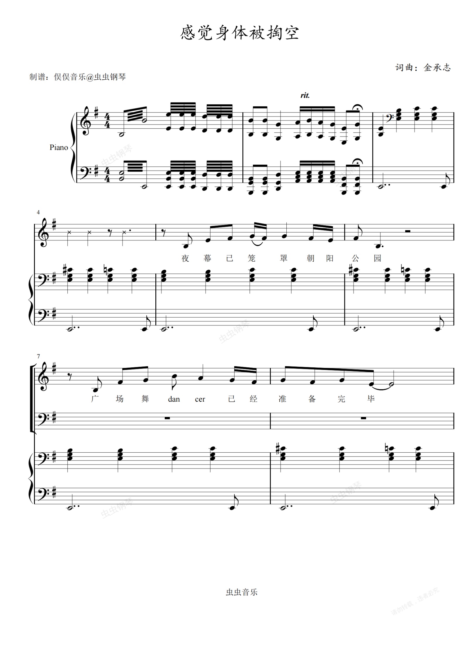 钢琴谱:感觉身体被掏空(4声部合唱伴奏谱)