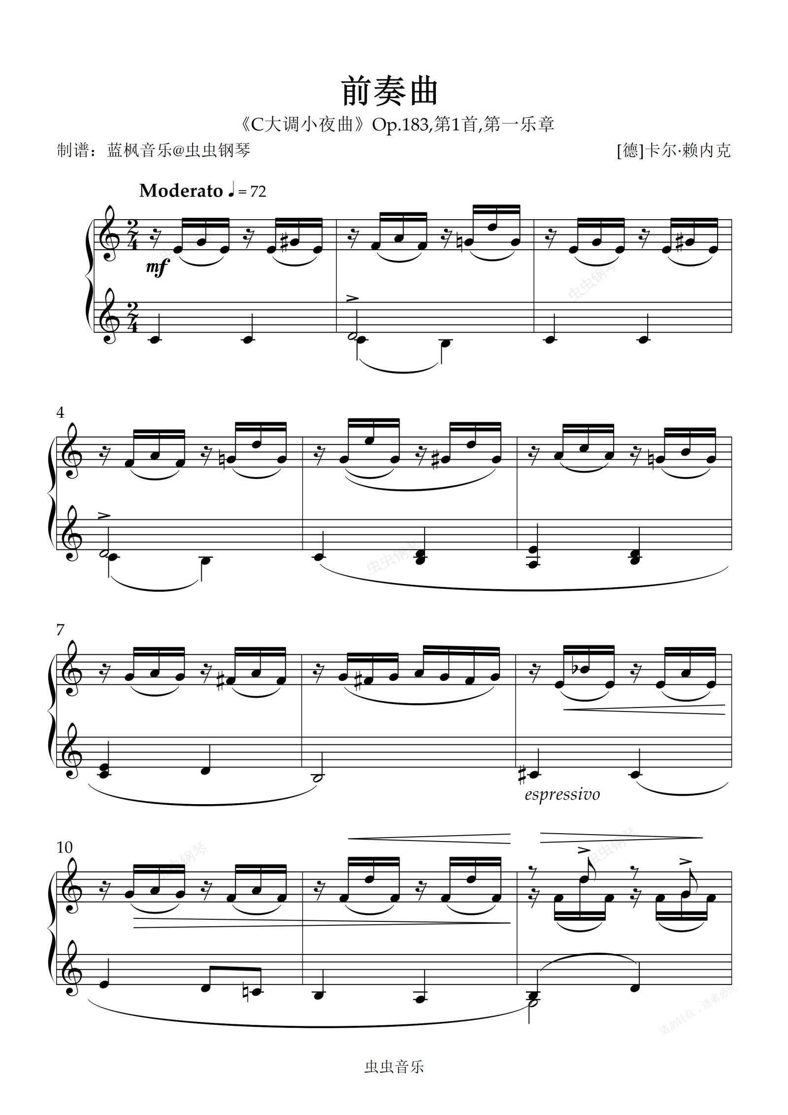 钢琴谱:前奏曲《C大调小夜曲》Op.183,第1首,第一乐章
