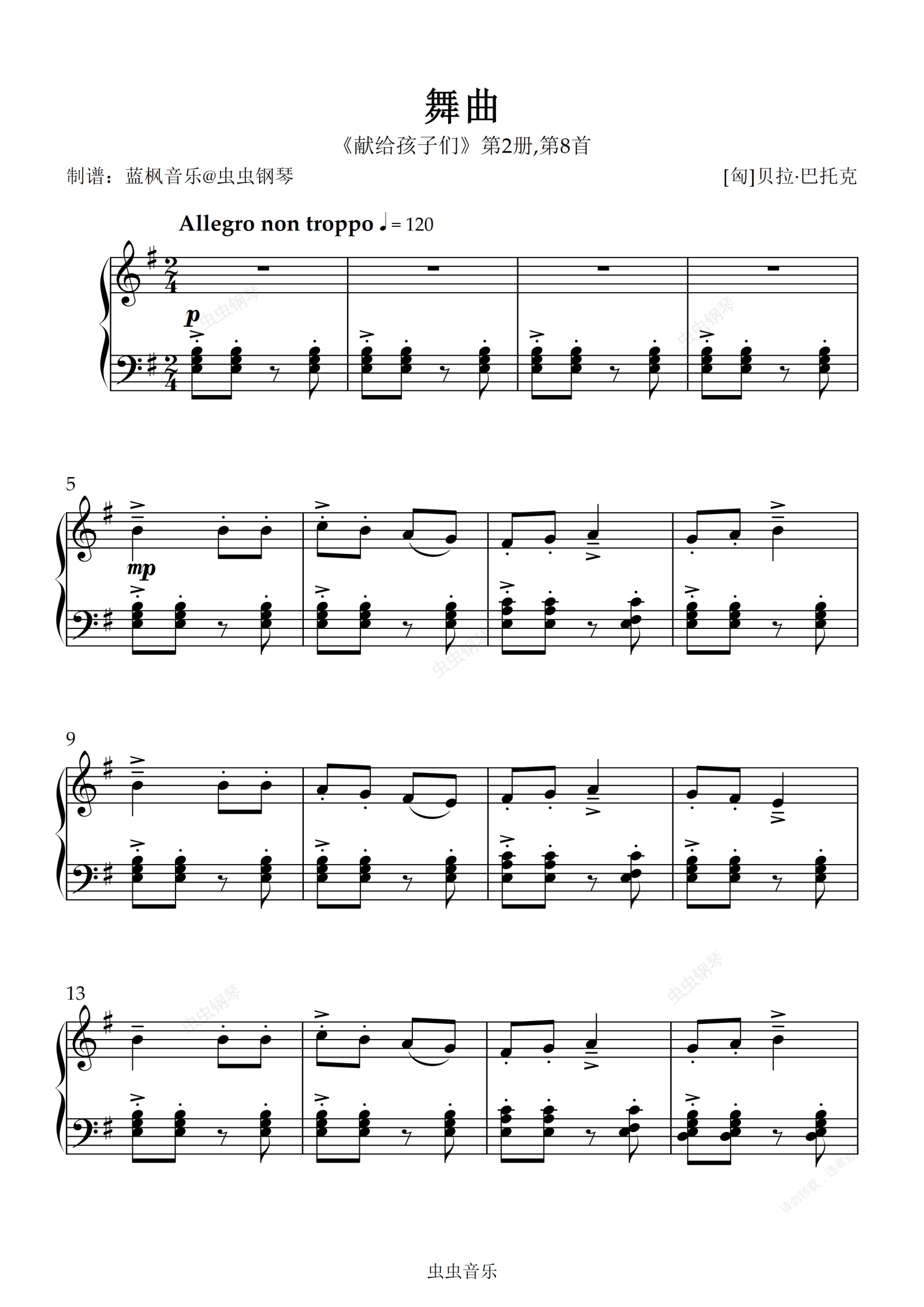 钢琴谱:舞曲 《献给孩子们》第2册,第8首