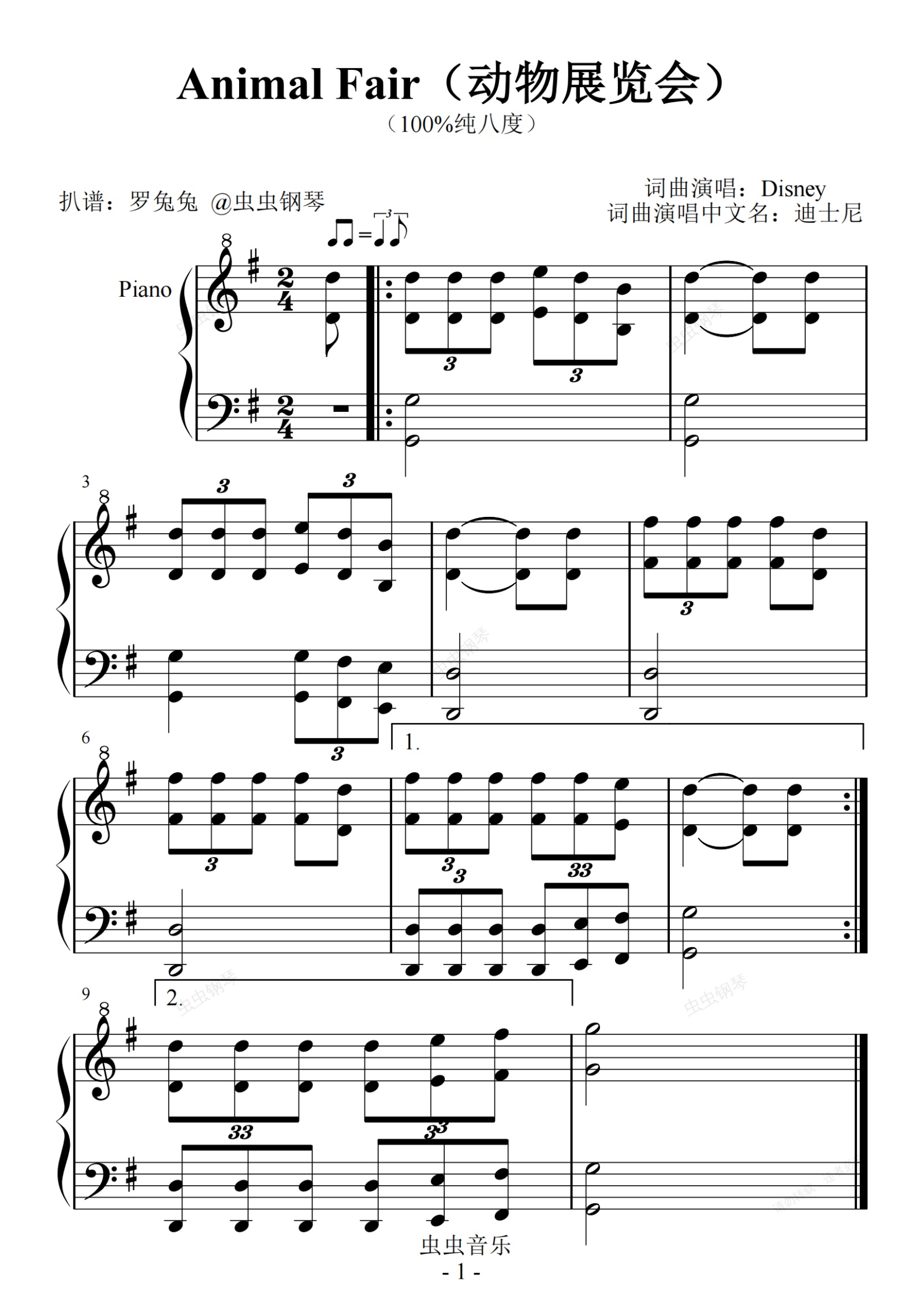 钢琴谱:Animal Fair(动物展览会)(100%纯八度)