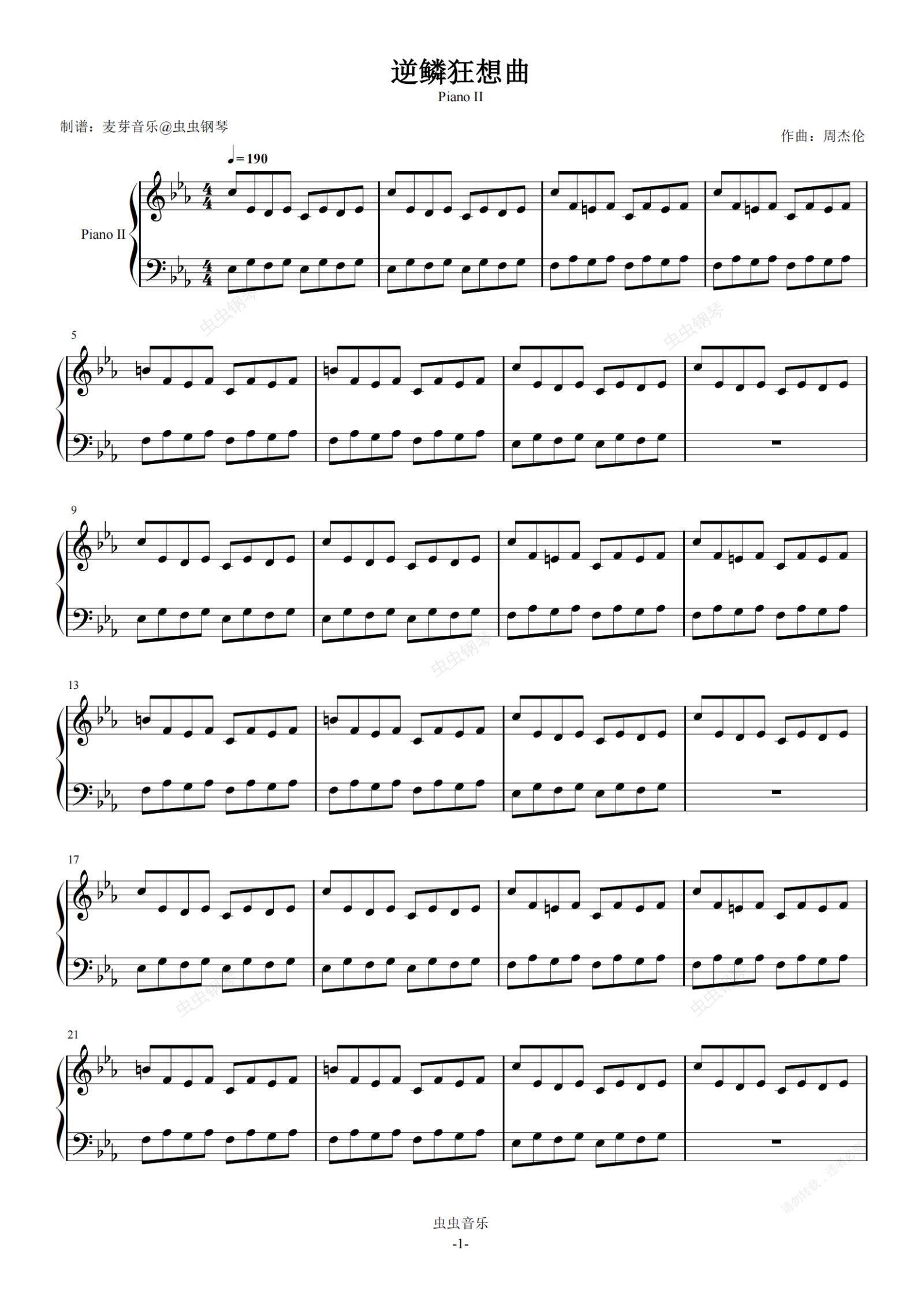 钢琴谱:逆鳞狂想曲 第二钢琴分谱
