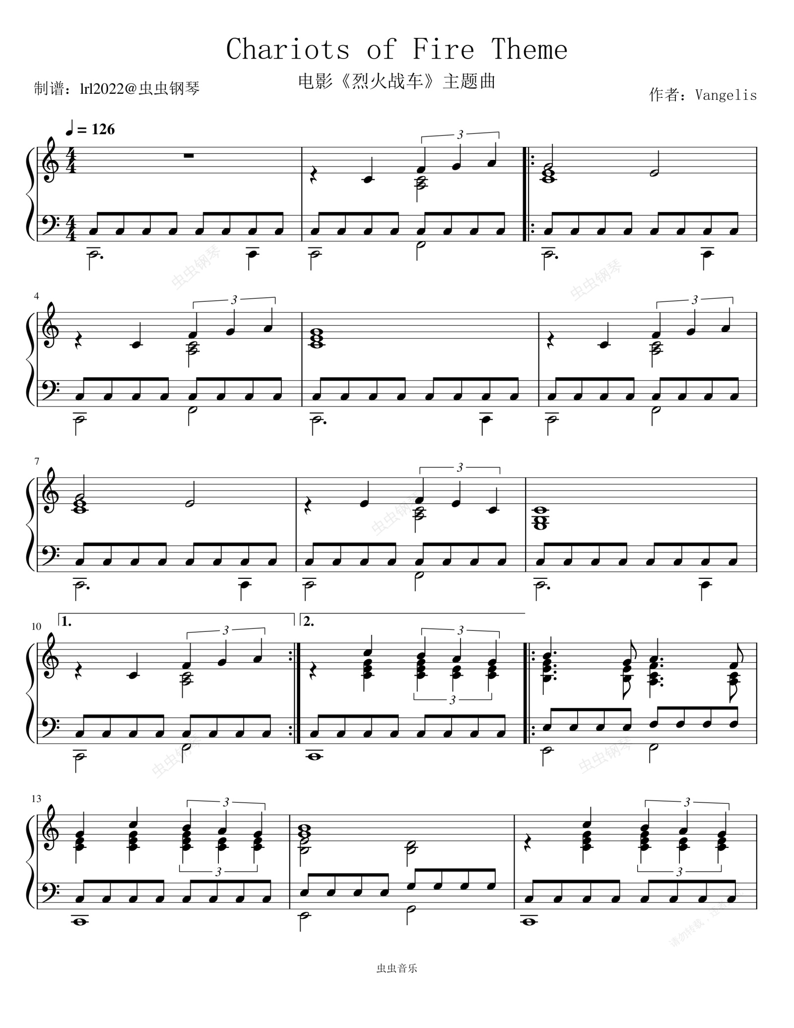 钢琴谱:Chariots of Fire - 电影《烈火战车》主题曲 - 简单版 钢琴独奏谱