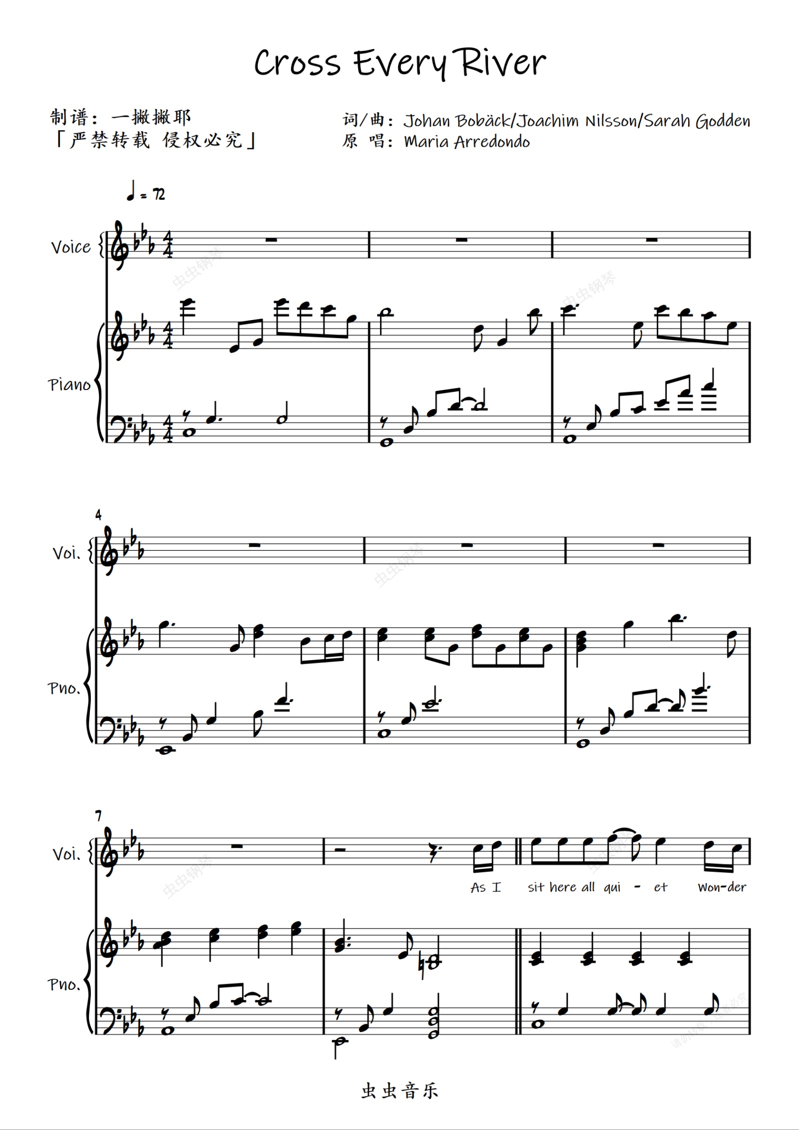 钢琴谱:现场版弹唱《Cross Every River》Maria Arredondo「一撇撇耶」