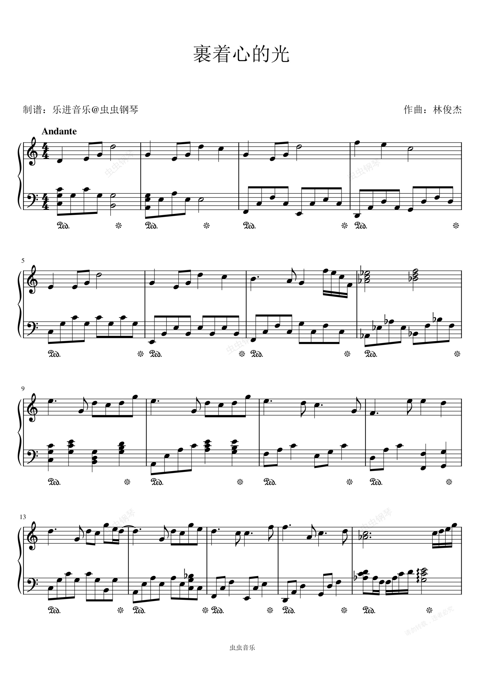 钢琴谱:《裹着心的光》C调