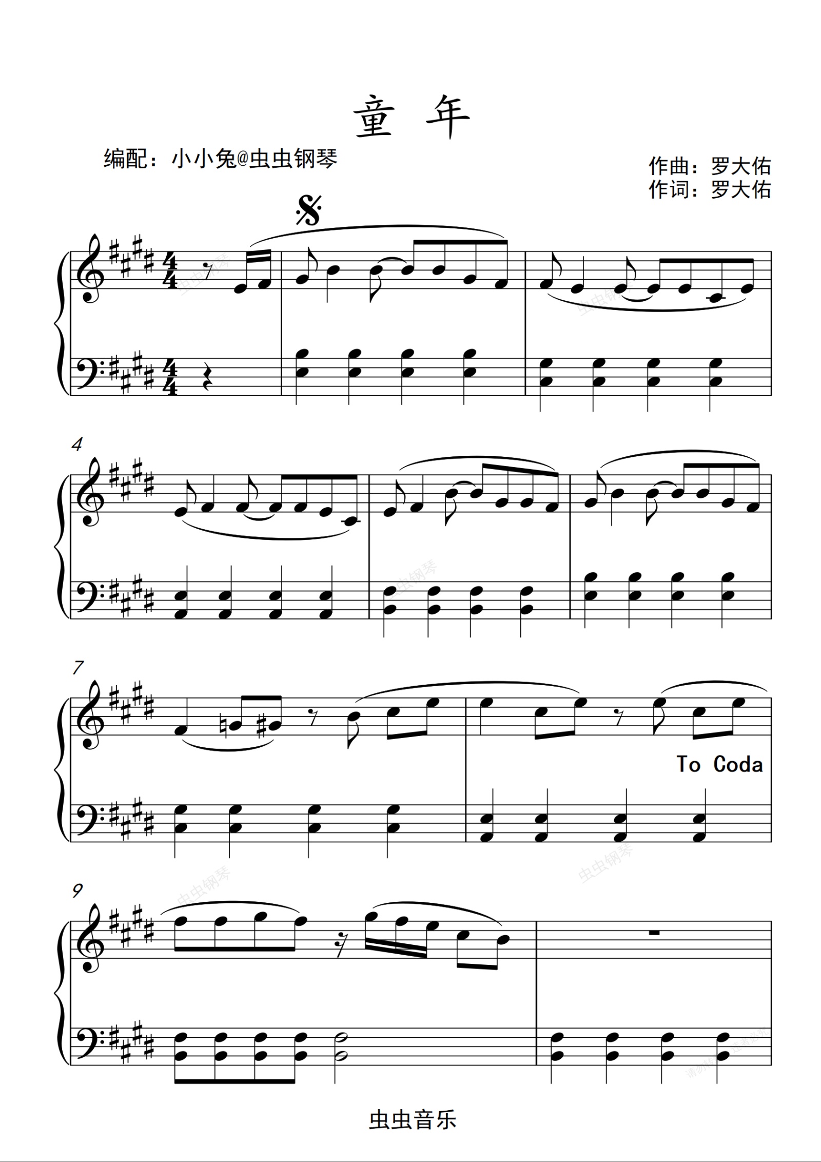 钢琴谱:童年 完整 小小兔