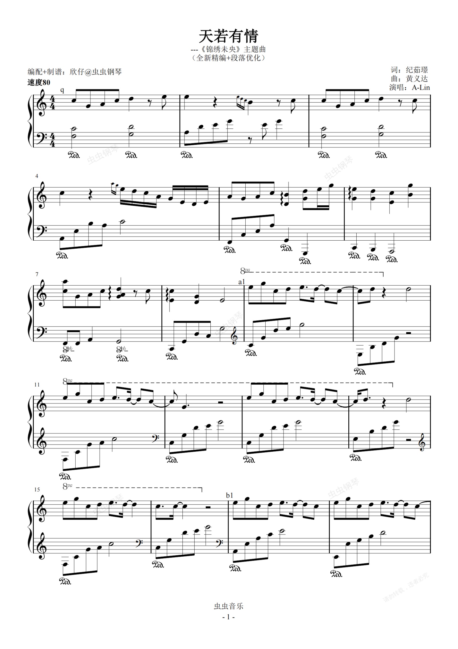 钢琴谱:A-Lin-C《天若有情》(全新精编+段落优化)