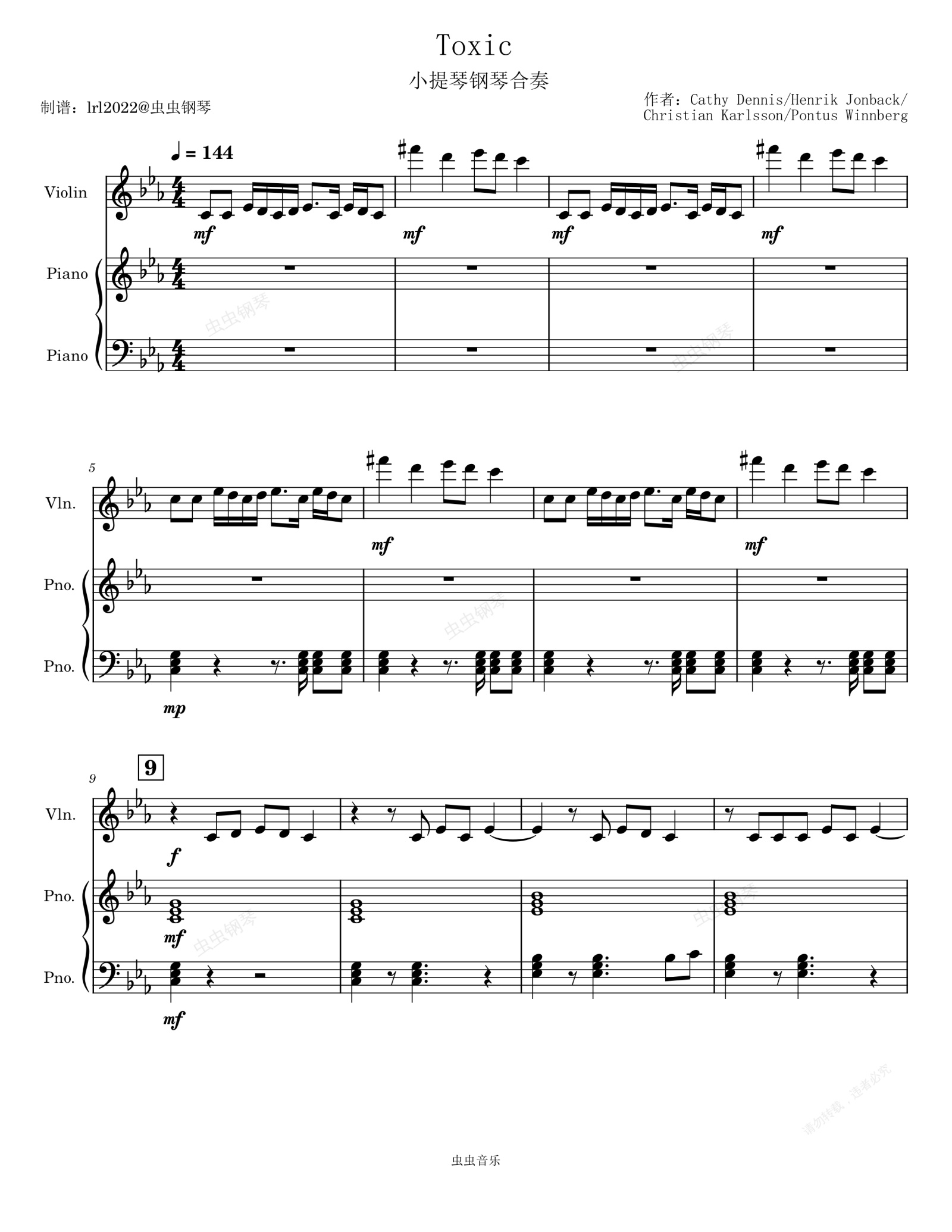 钢琴谱:Toxic - Britney Spears - 小提琴钢琴合奏