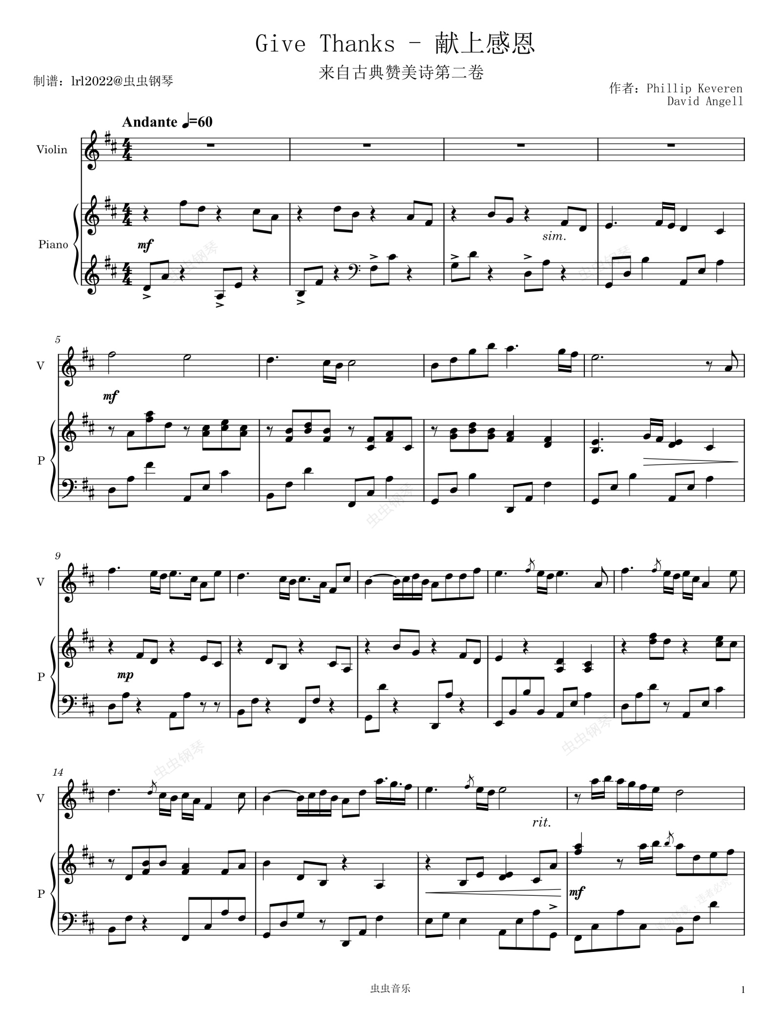 钢琴谱:Give Thanks - 取自古典赞美诗第二卷 - Classical Praise Volume 2 - 小提琴钢琴合奏