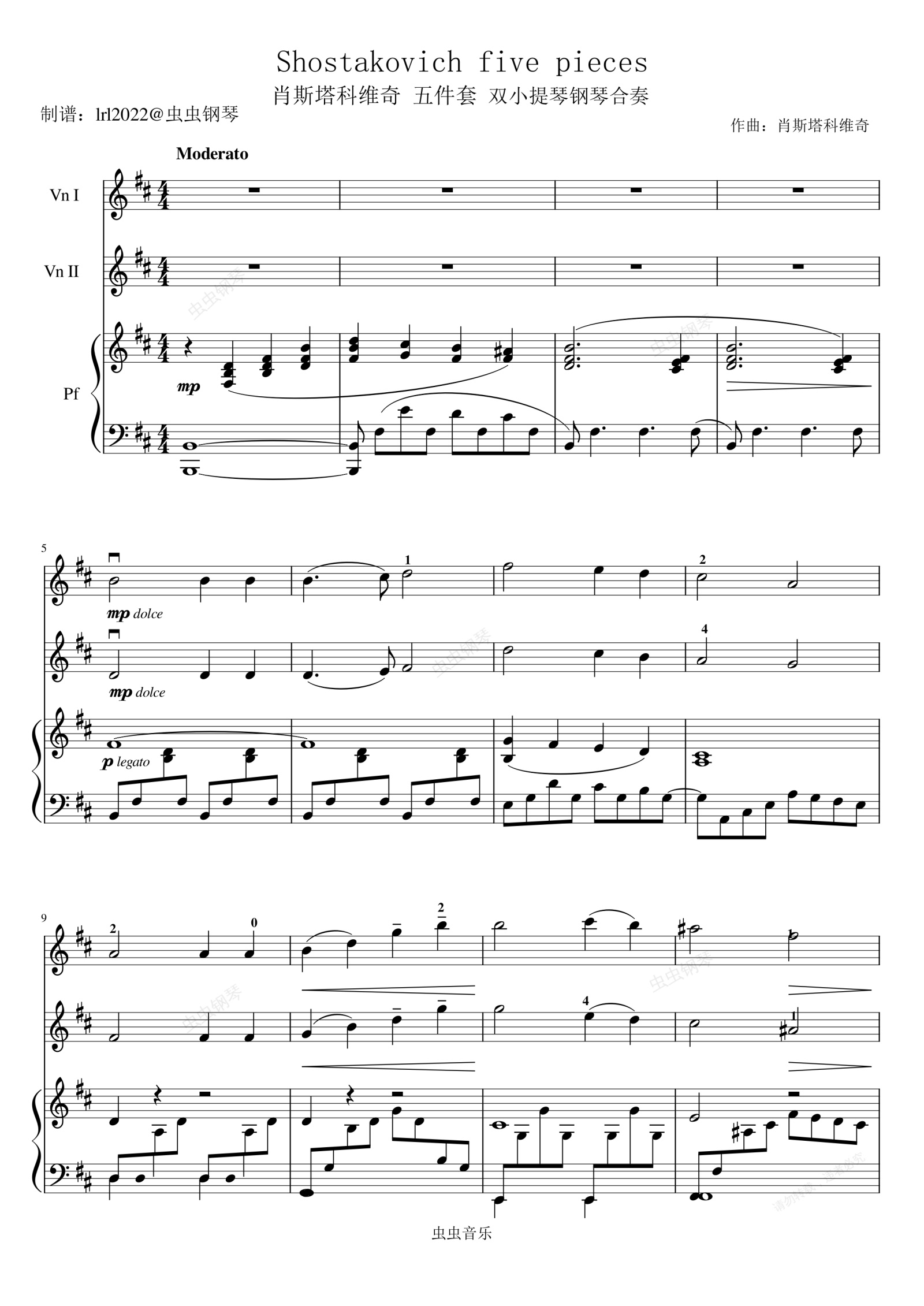 钢琴谱:Shostakovich Five pieces - 肖斯塔科维奇 五件套 - 双小提琴钢琴合奏 - 5 pieces