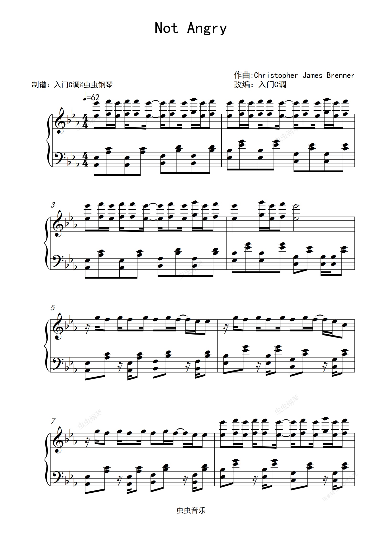钢琴谱:Chris James《Not Angry》降E调入门简单俏皮版