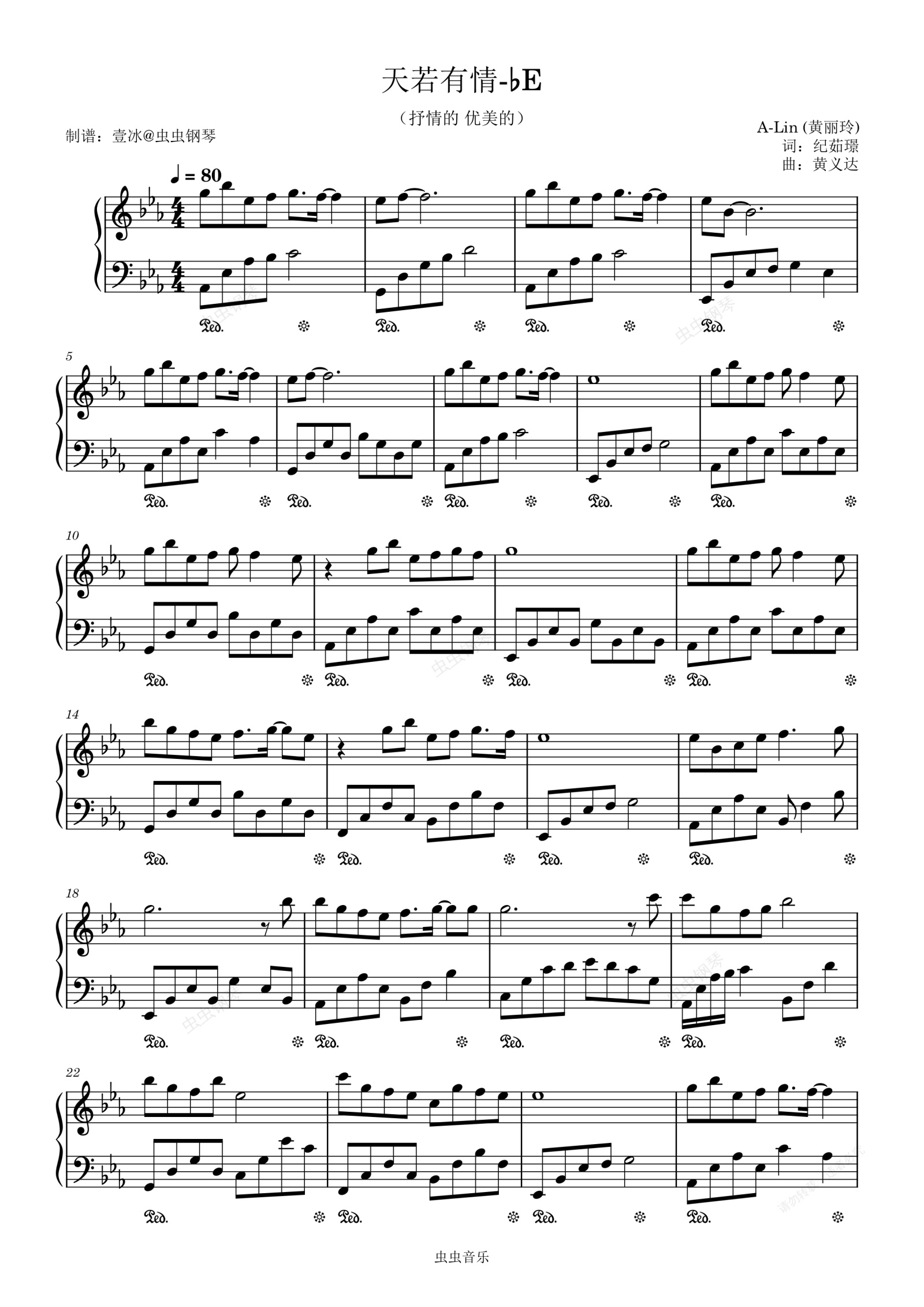 钢琴谱:天若有情 (《锦绣未央》电视剧主题曲)-C调