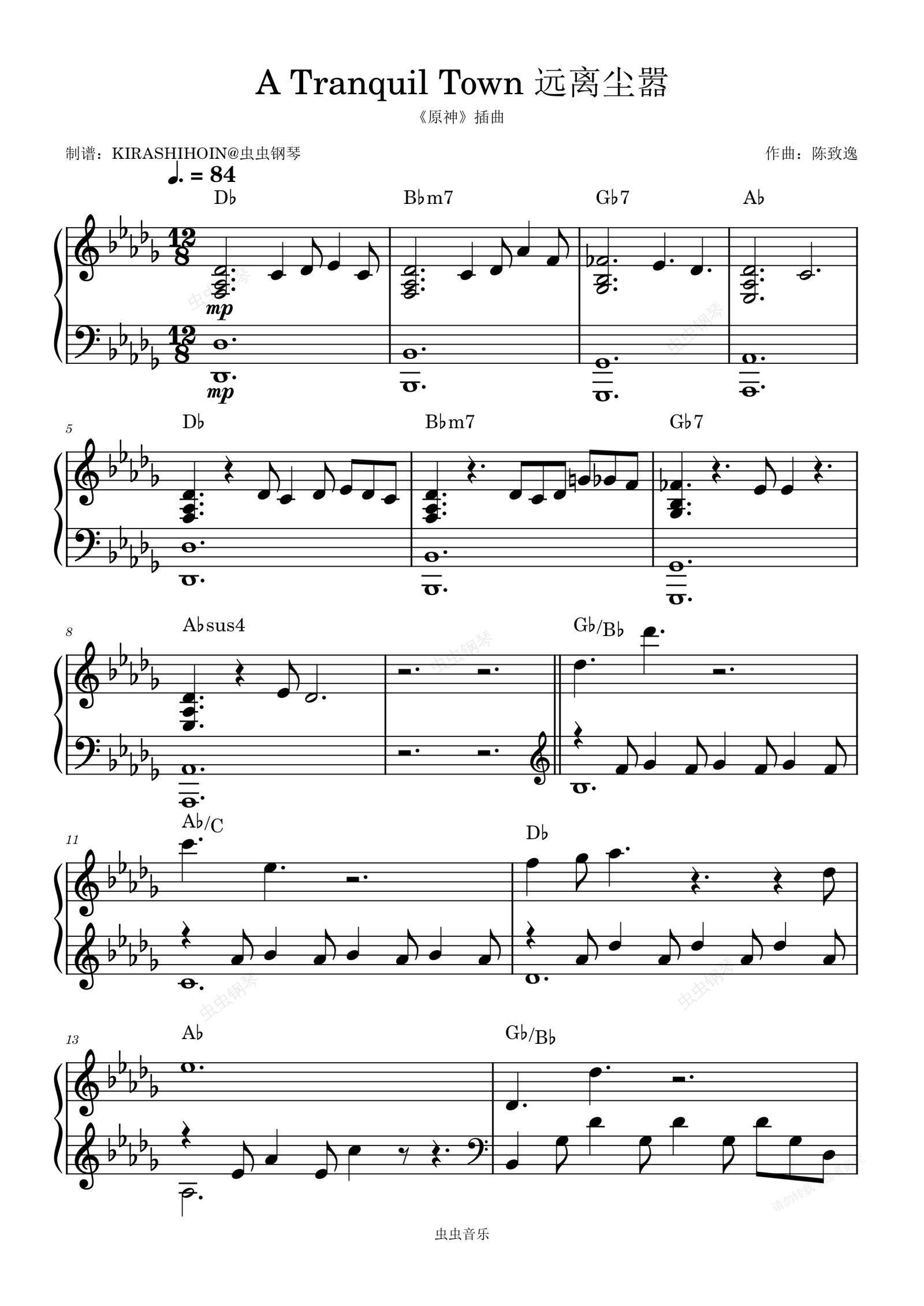 钢琴谱:A Tranquil Town 远离尘嚣(《原神》插曲)- 陈致逸
