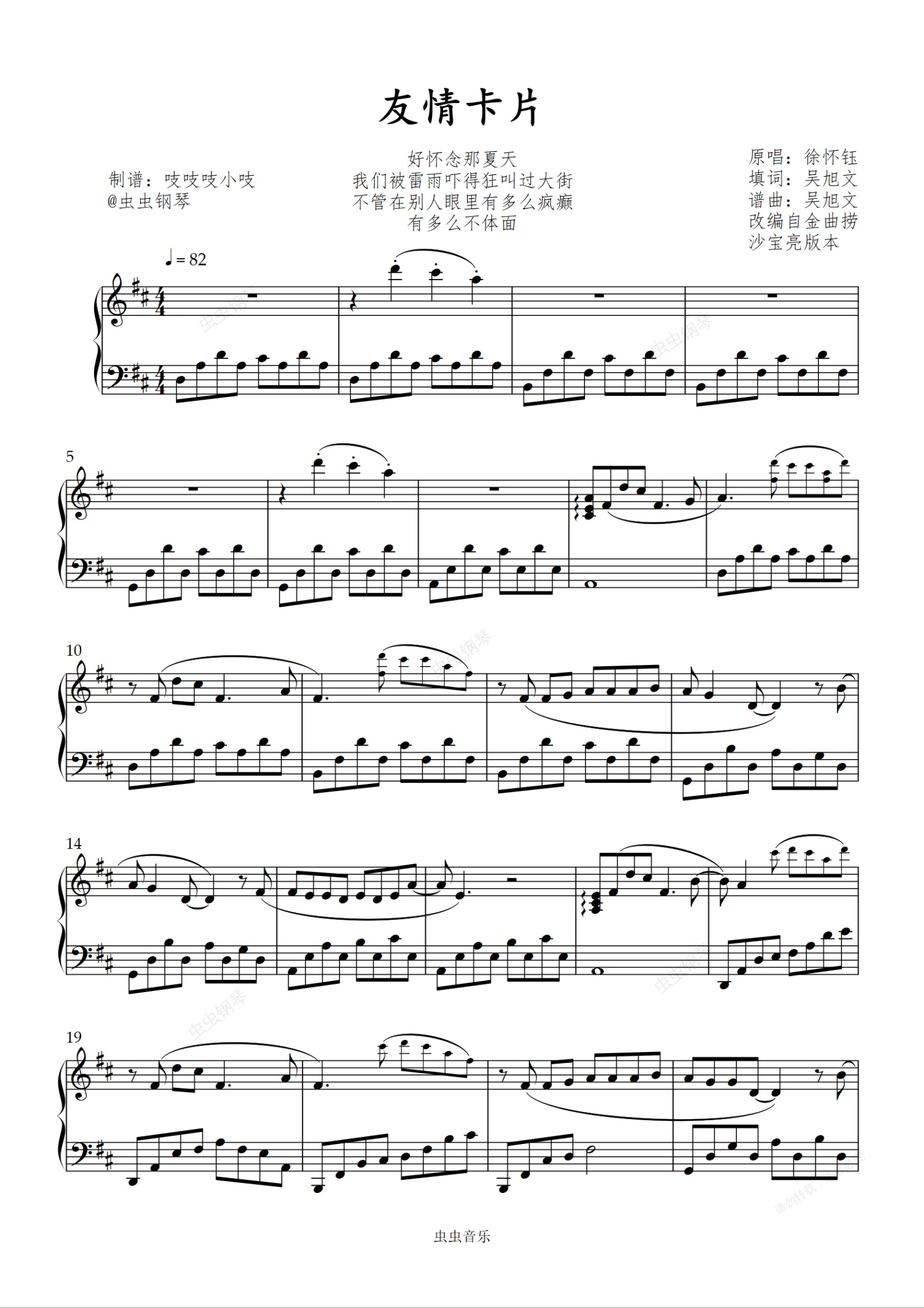 钢琴谱:友情卡片 金曲捞 沙宝亮 怀旧经典 吱吱编配