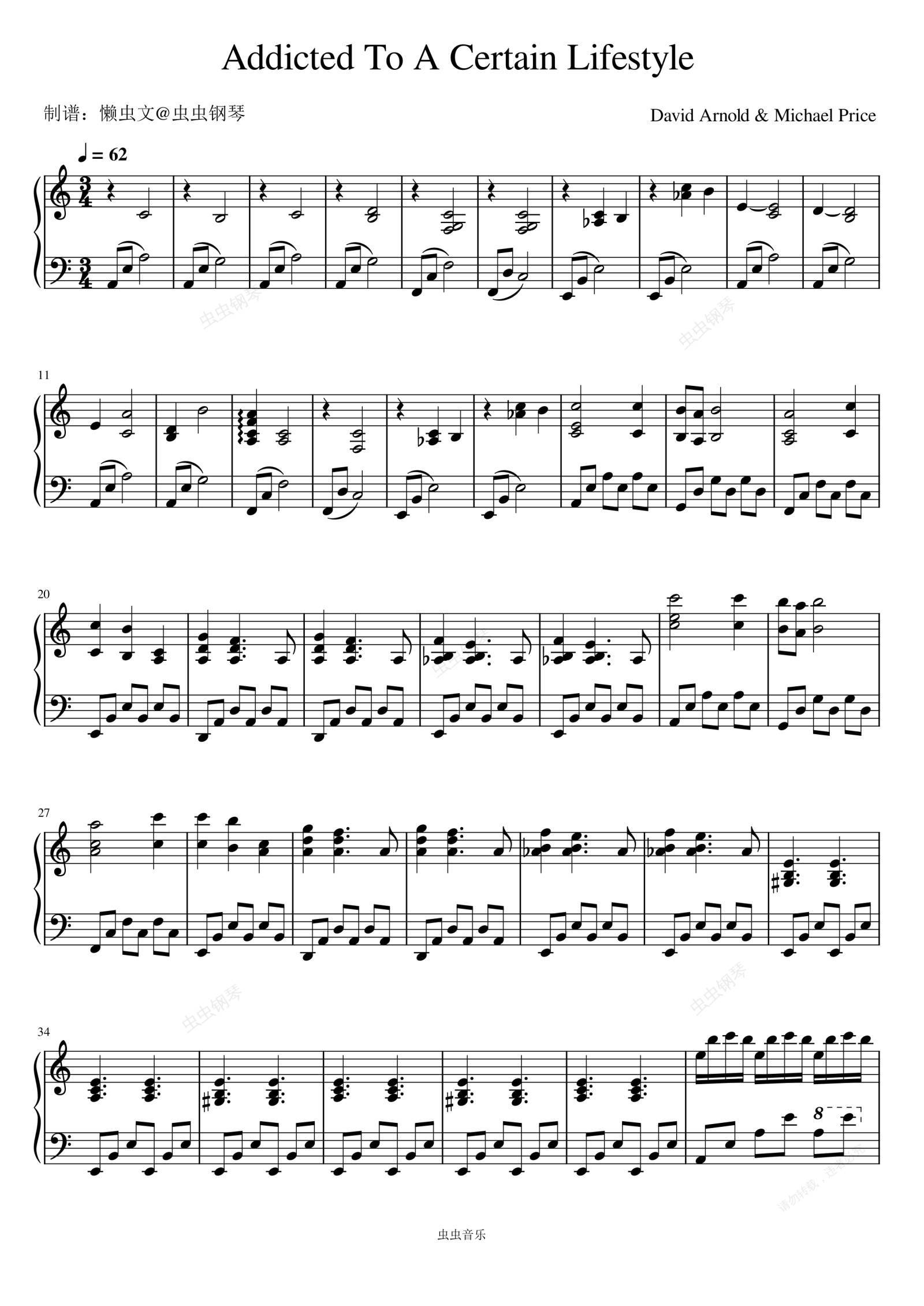 钢琴谱:Addicted to a Certain Lifestyle - David Arnold /Michael Price