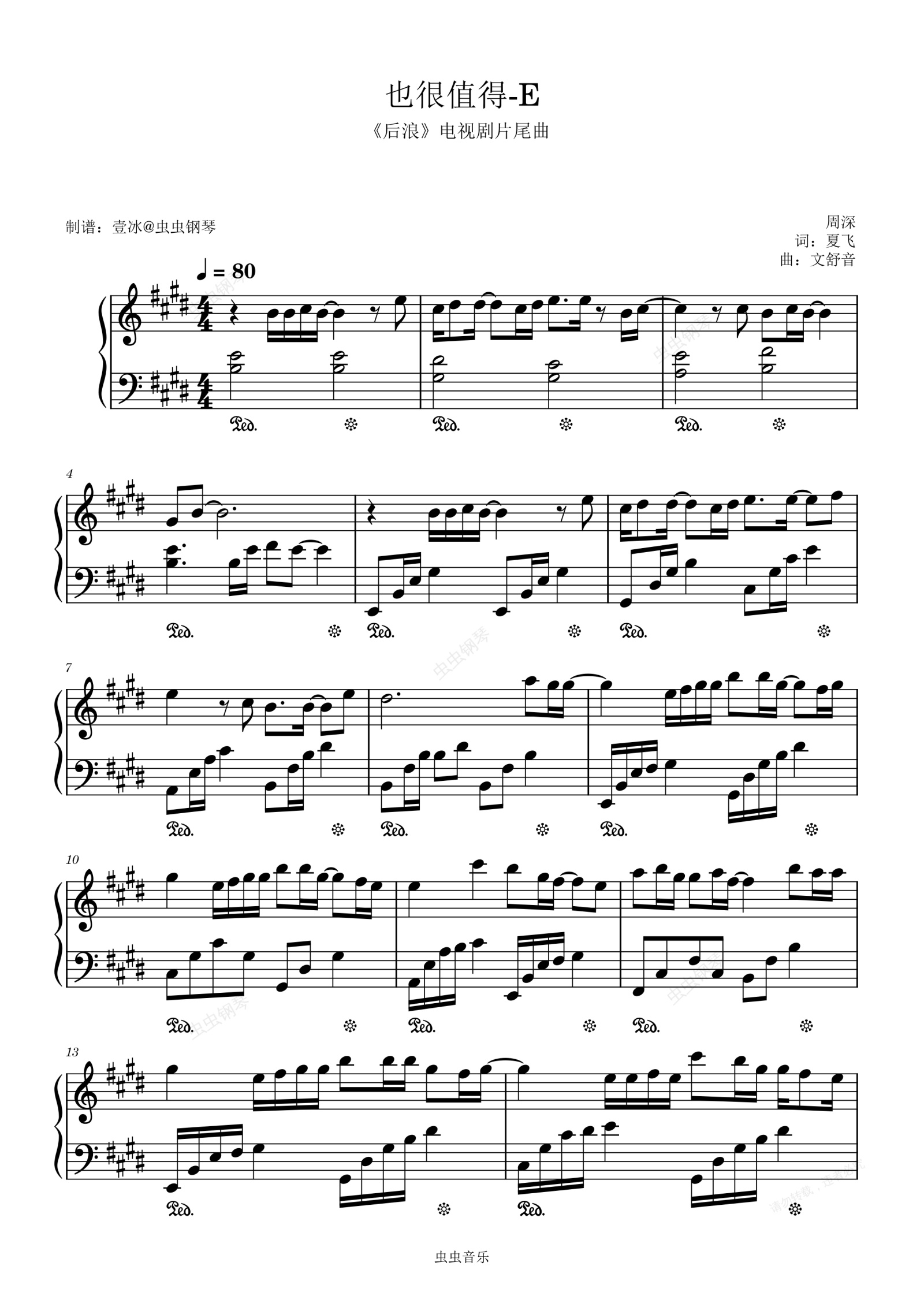钢琴谱:也很值得 (《后浪》电视剧片尾曲)-原调