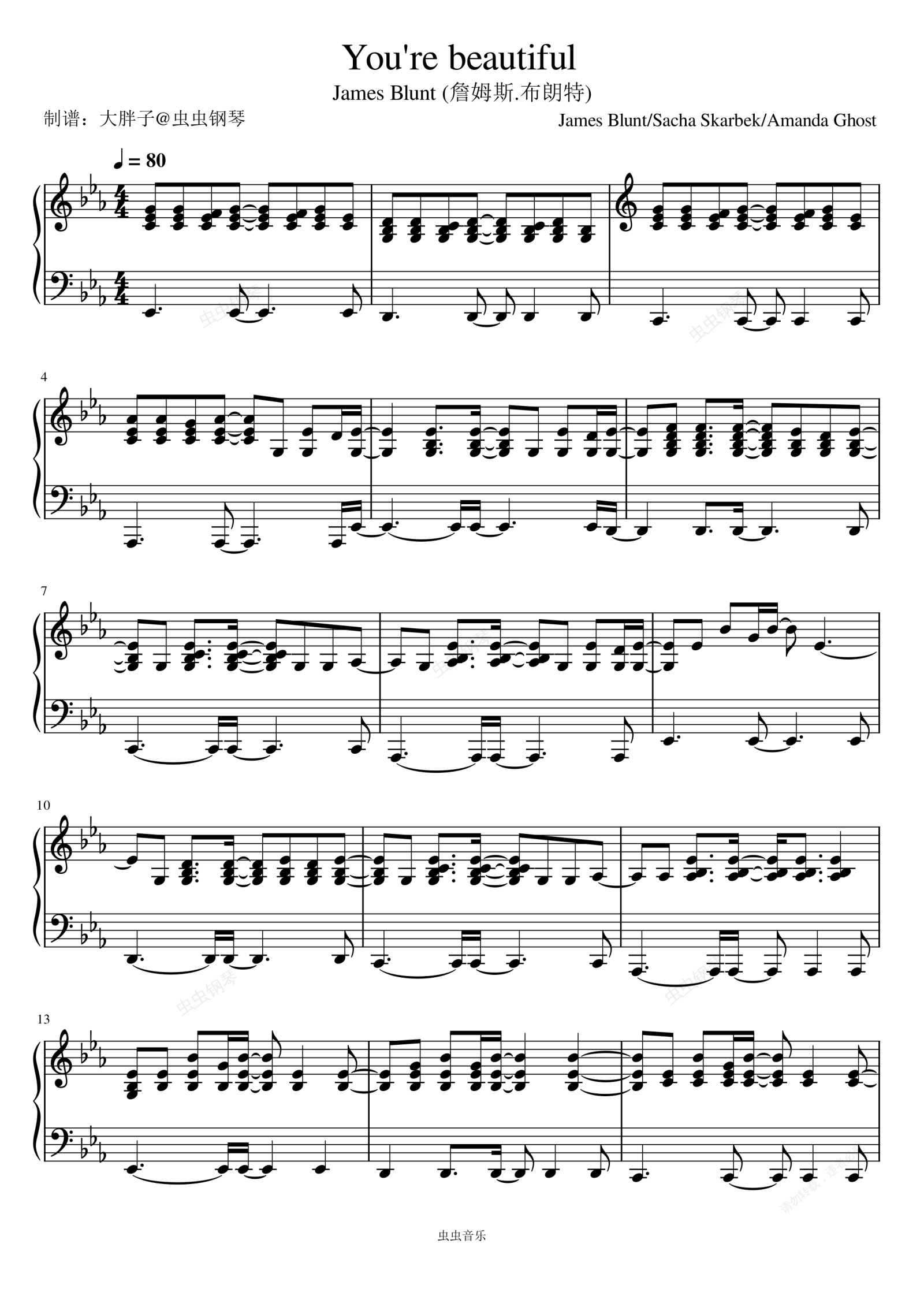 钢琴谱:You're Beautiful (Explicit) - James Blunt (詹姆斯.布朗特)