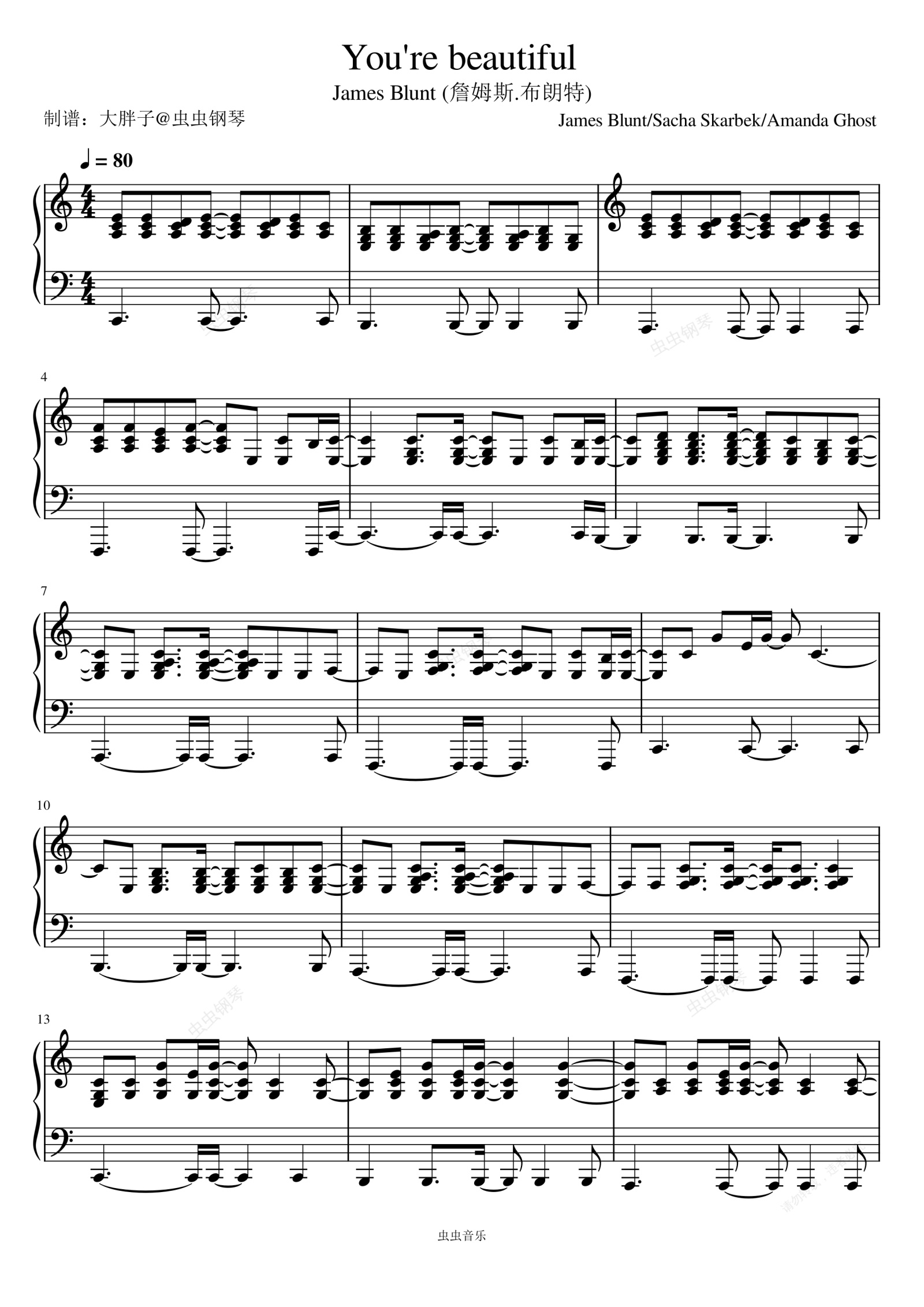 钢琴谱:You're Beautiful (Explicit) - James Blunt (詹姆斯.布朗特)