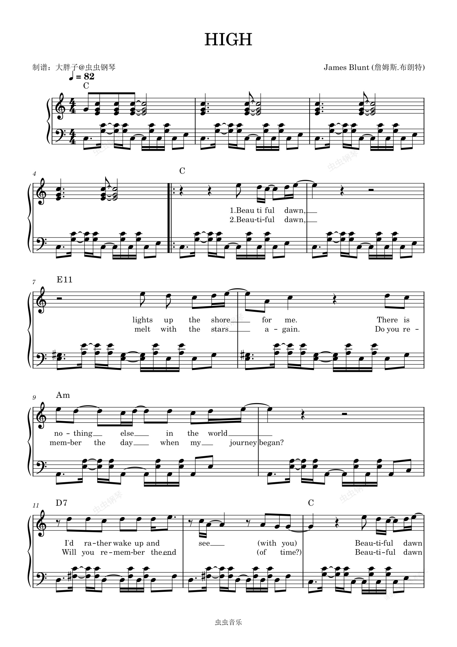 钢琴谱:High - James Blunt (詹姆斯.布朗特)