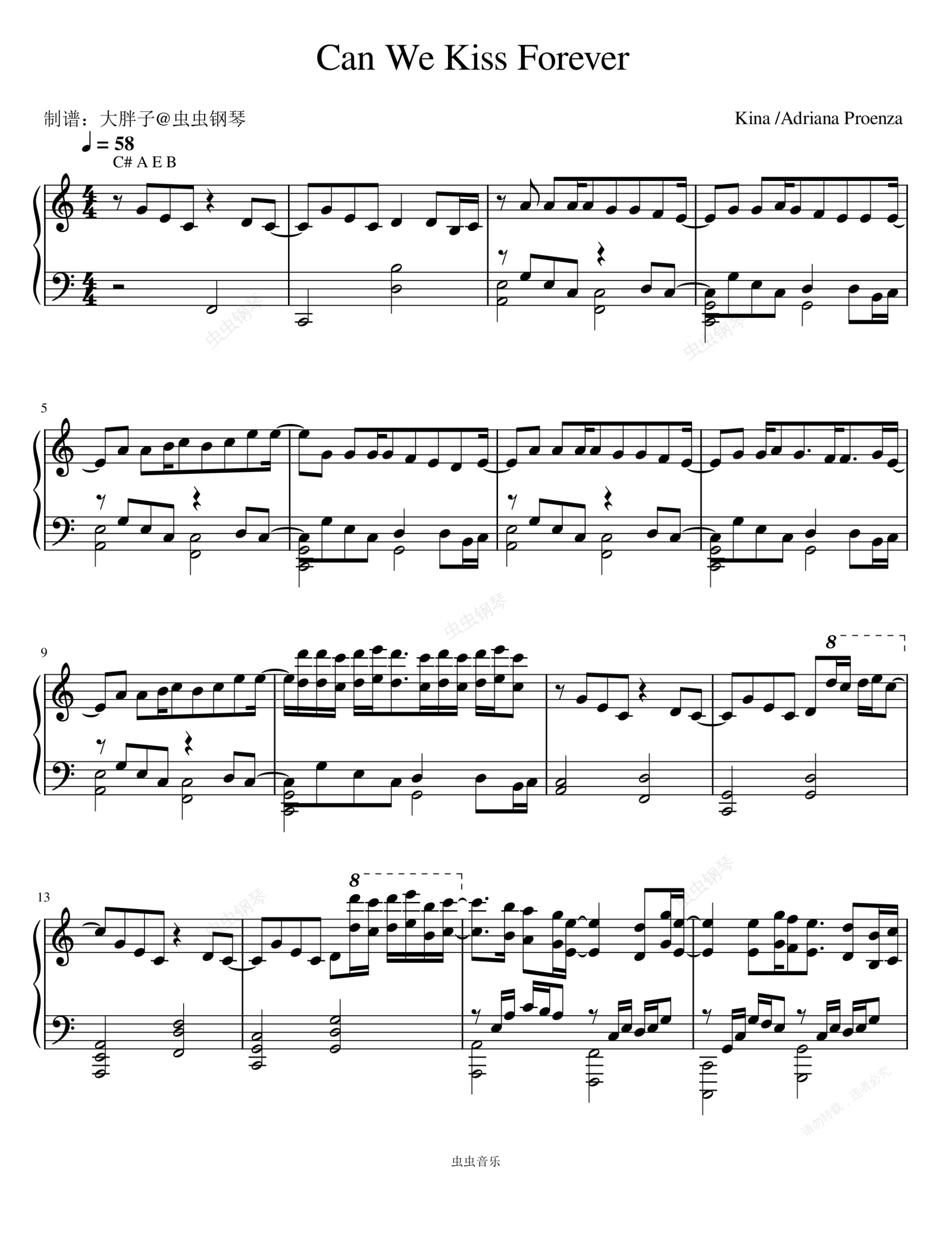 钢琴谱:Can We Kiss Forever - Kina/Adriana Proenza