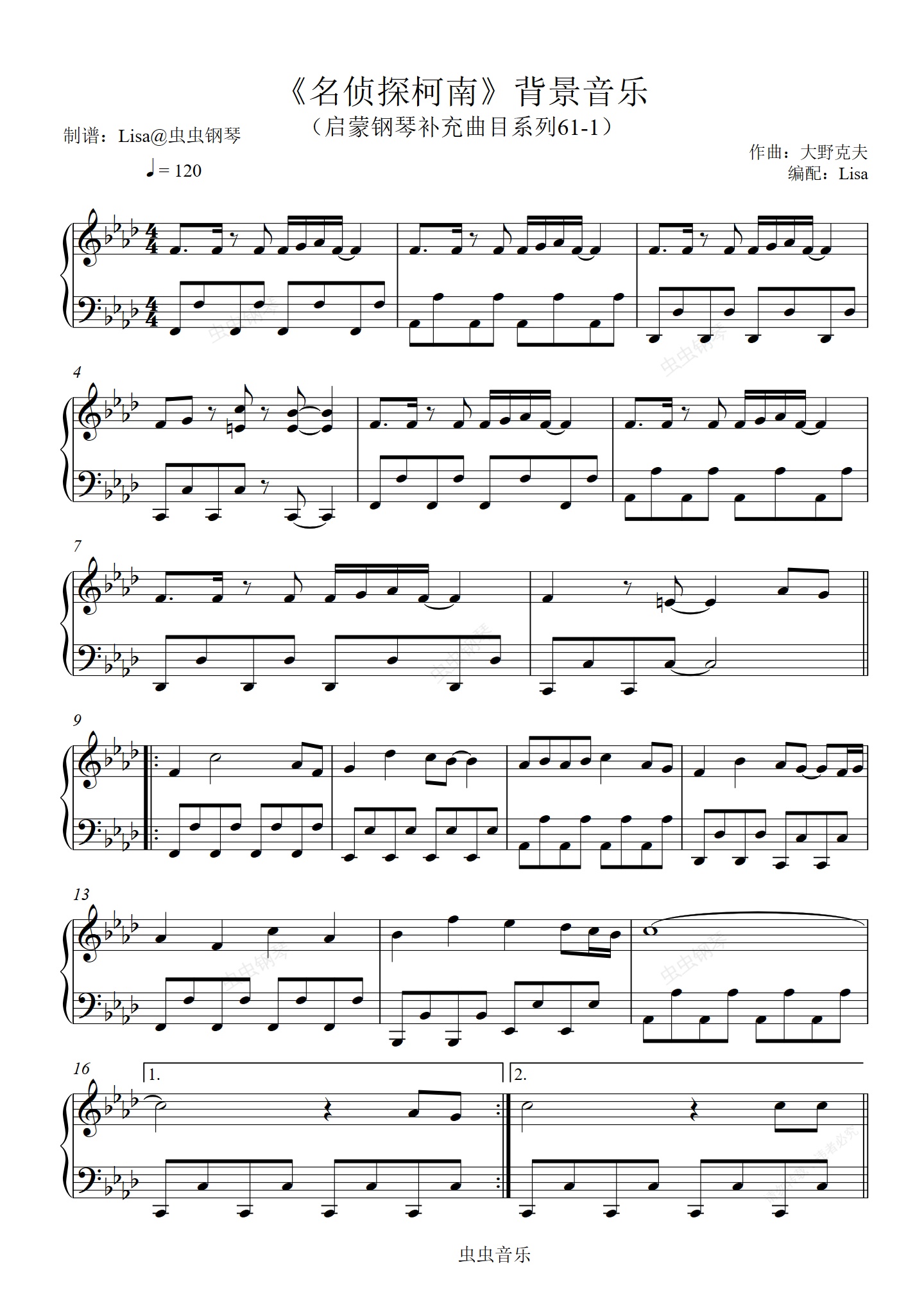 钢琴谱:名侦探柯南背景音乐-小汤5水平