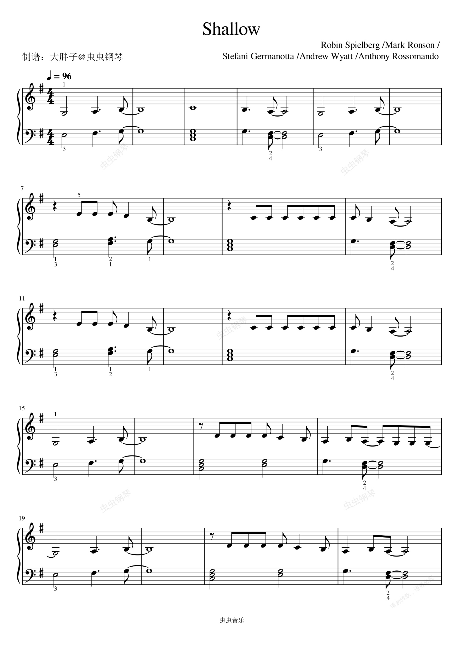 钢琴谱:Shallow - Robin Spielberg /Mark Ronson /Stefani Germanotta /Andrew Wyatt /Anthony Rossomando