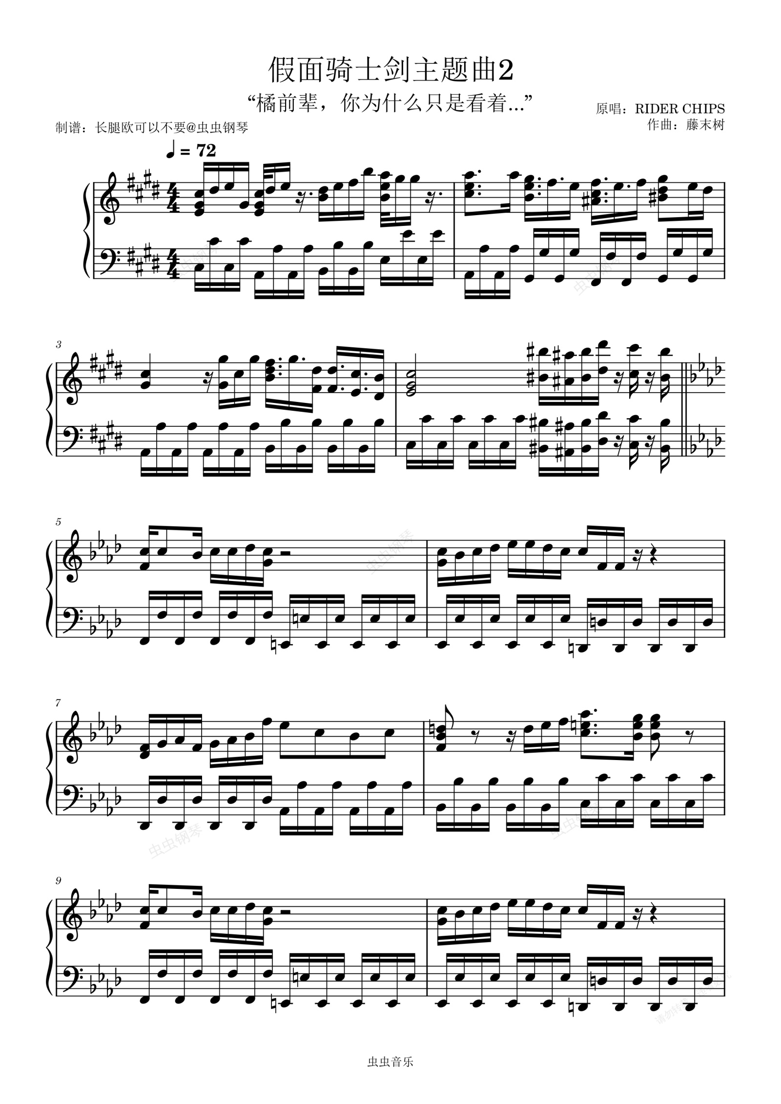 钢琴谱:假面骑士剑主题曲-《ELEMENTS》