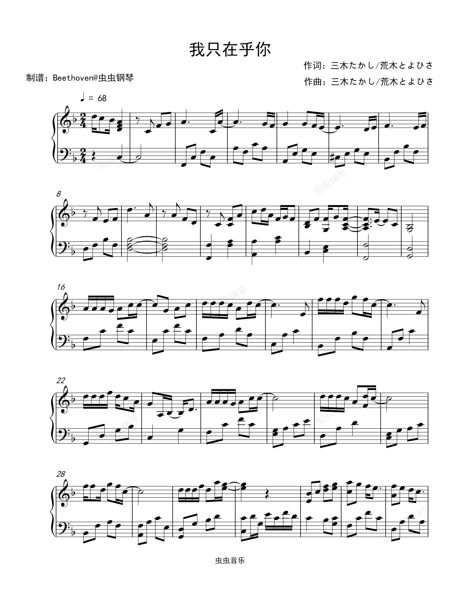 钢琴谱:我只在乎你-邓丽君