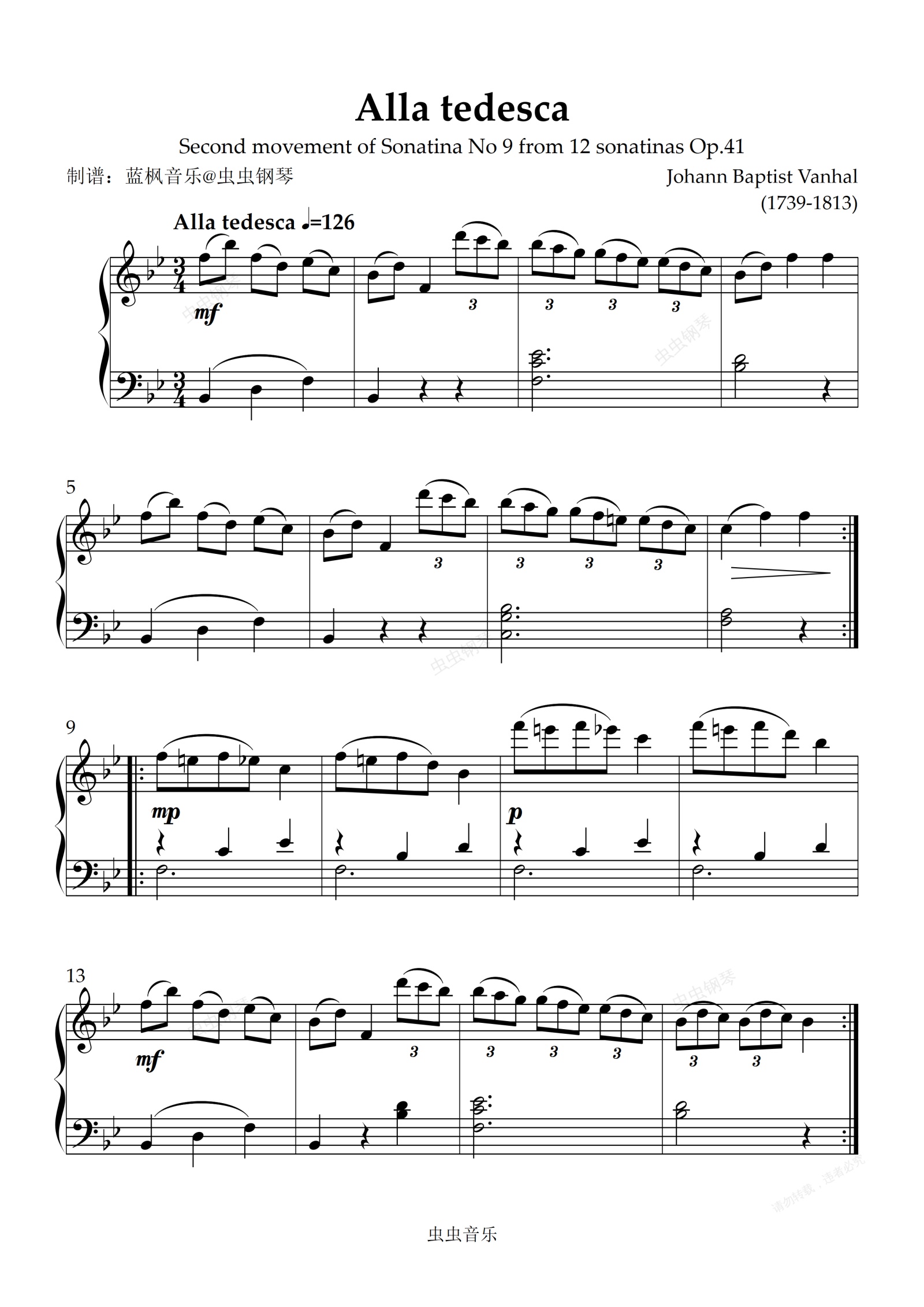 钢琴谱:34. (G3) Alla tedesca - Vanhal