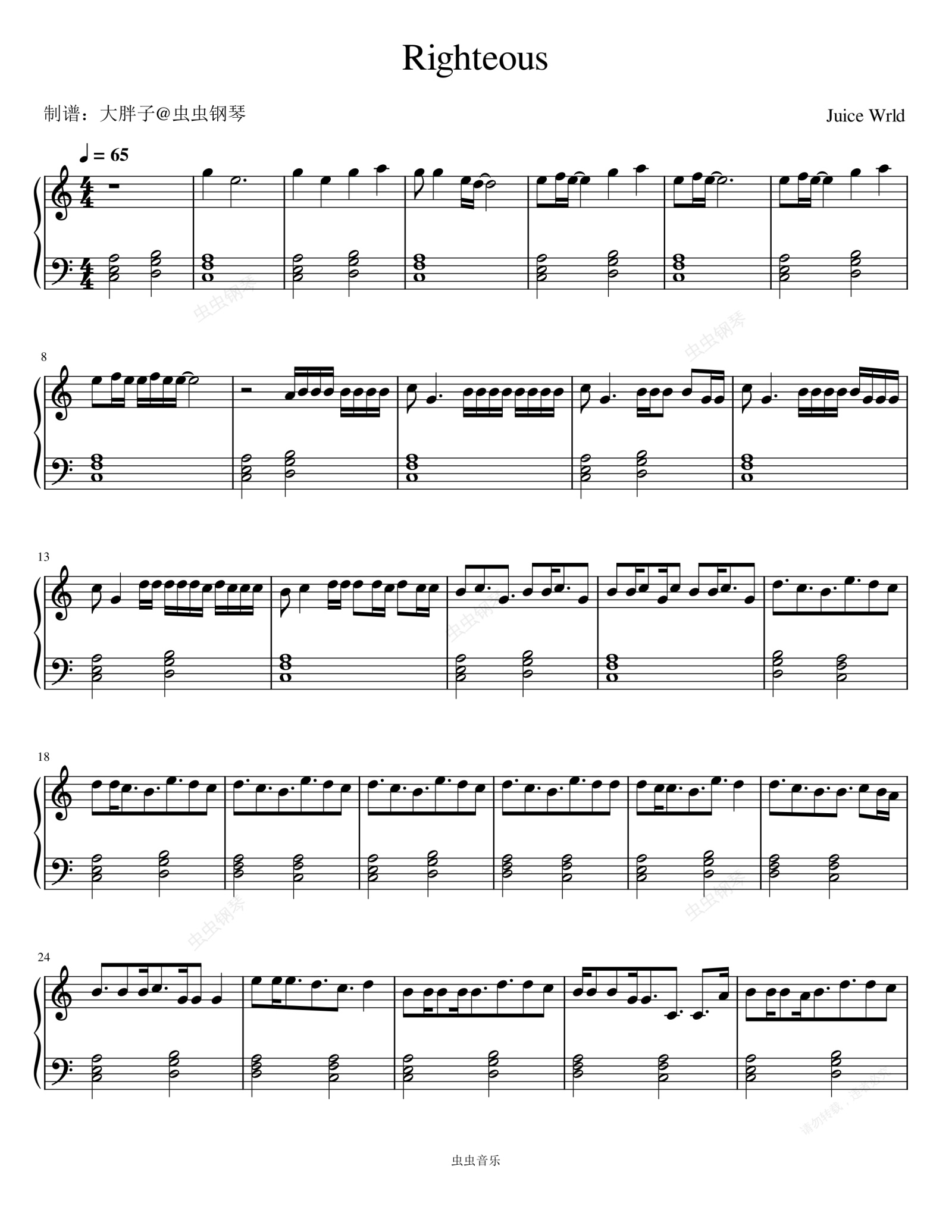 钢琴谱:Righteous - Juice WRLD