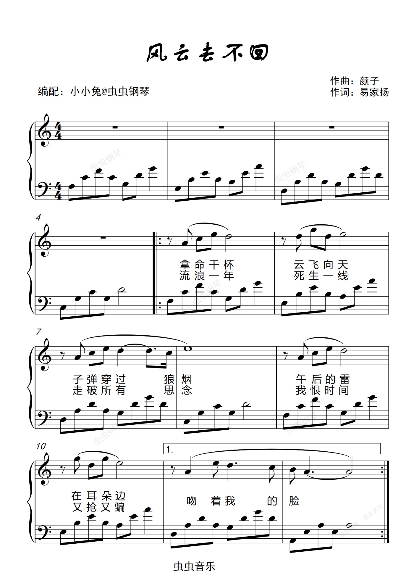 钢琴谱:风云去不回 战狼2 C调