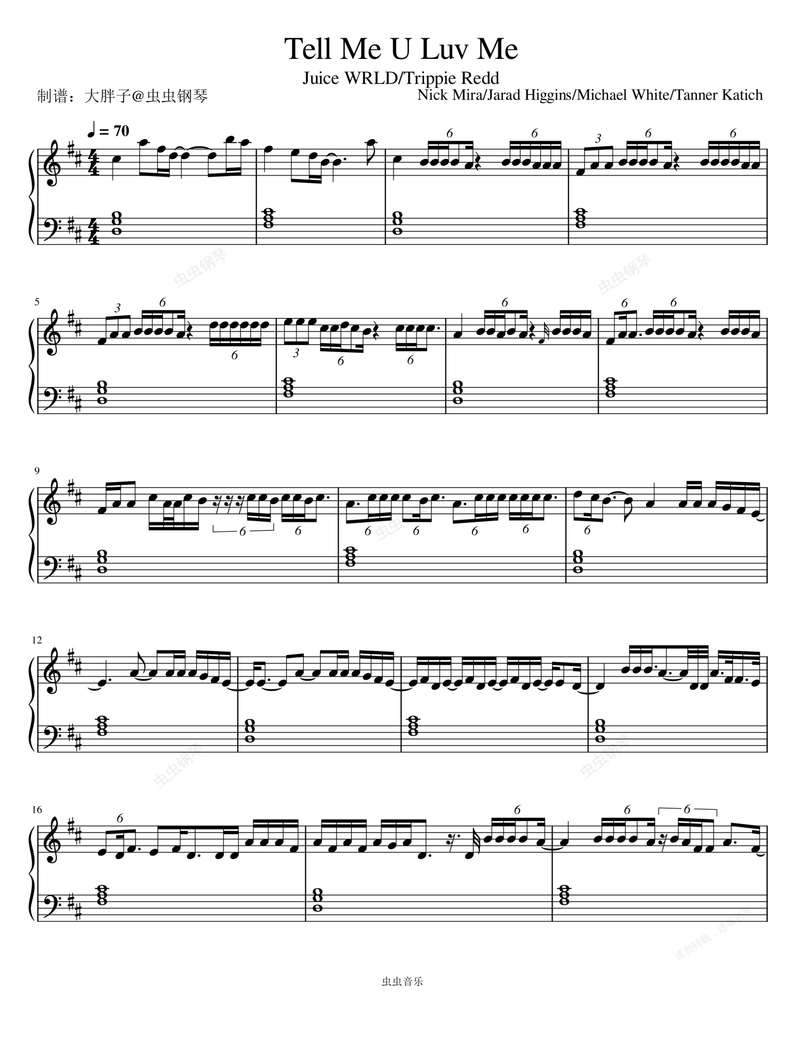 钢琴谱:Tell Me U Luv Me (Explict) - Juice WRLD/Trippie Redd