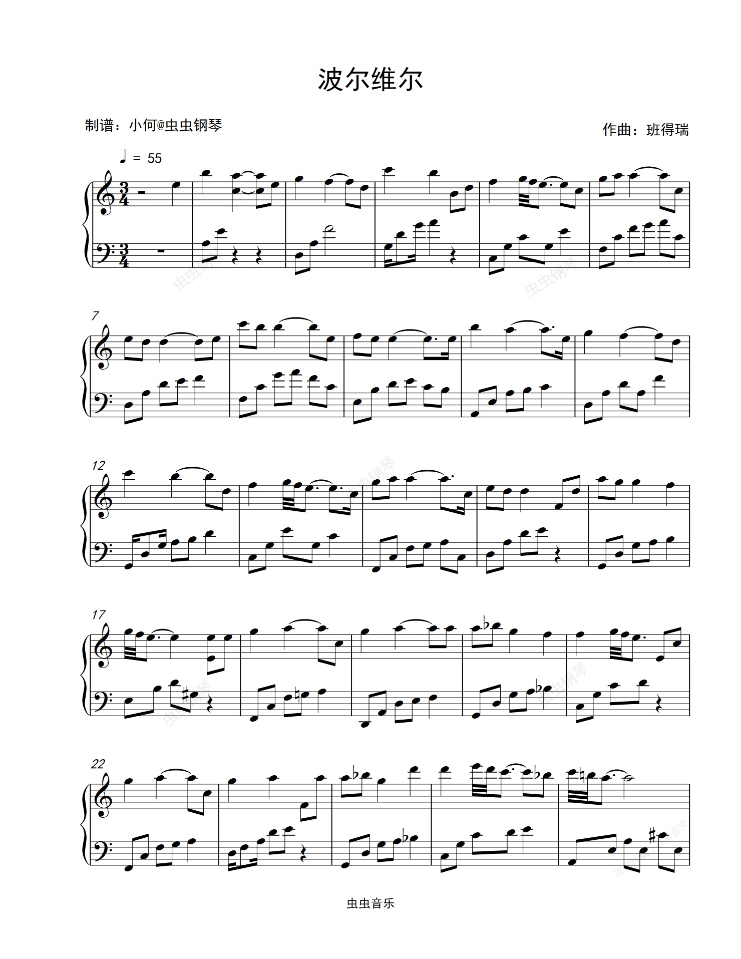 钢琴谱:皮尔之街Pier Amenue-波尔维尔《水之印象》班得瑞