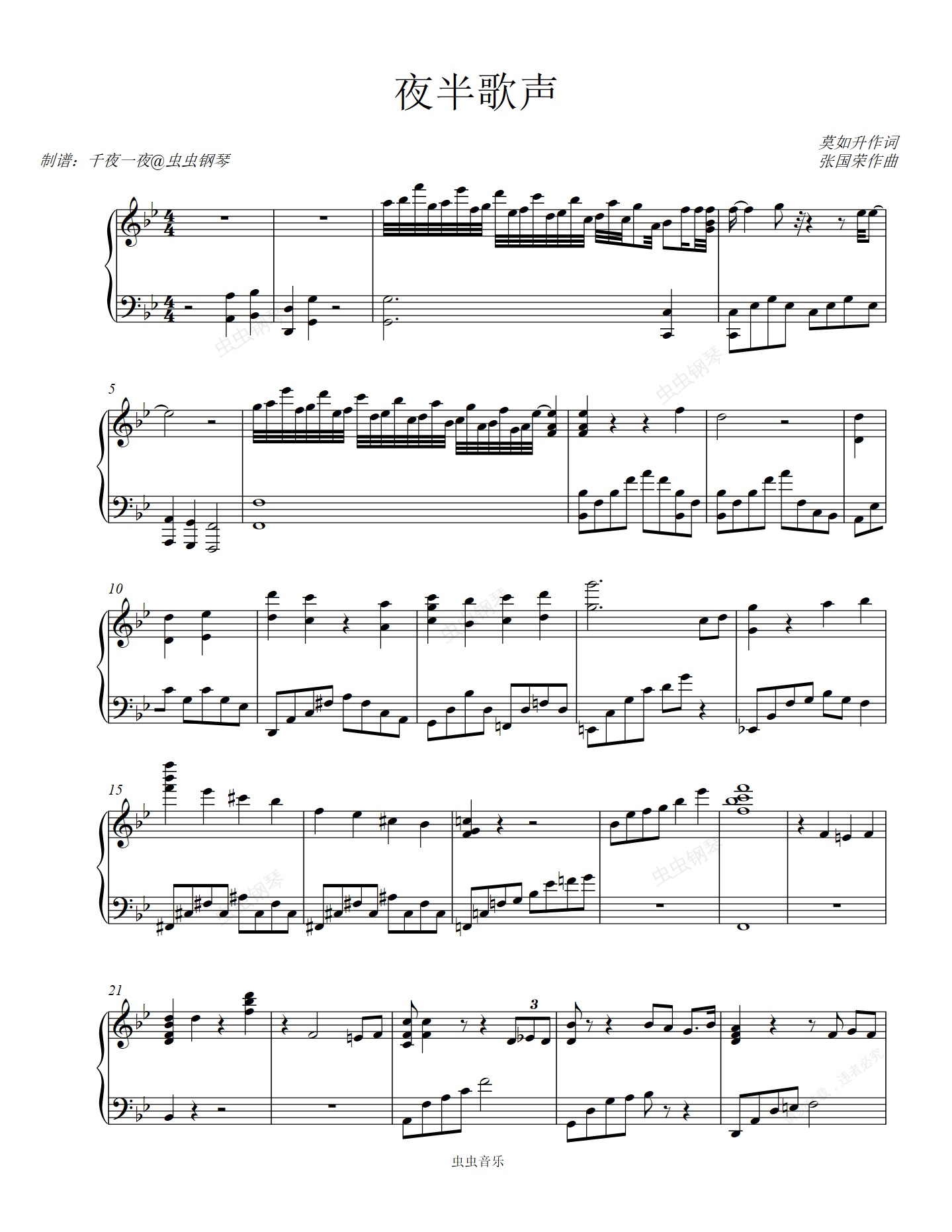 钢琴谱:华晨宇不作改编的歌《夜半歌声》 张国荣&华晨宇
