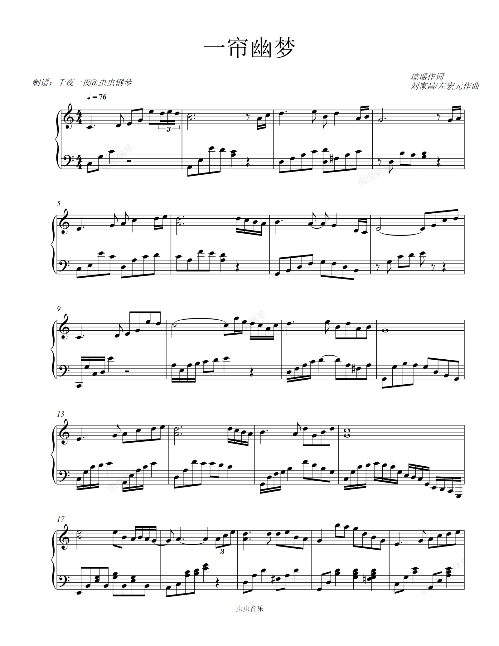 钢琴谱:邓丽君《一帘幽梦》时光已逝,经典永恒