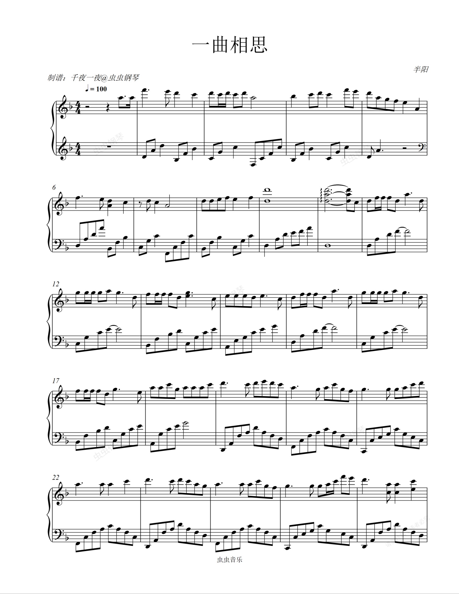 钢琴谱:这首《一曲相思》红遍全网,半阳原唱,特好听!