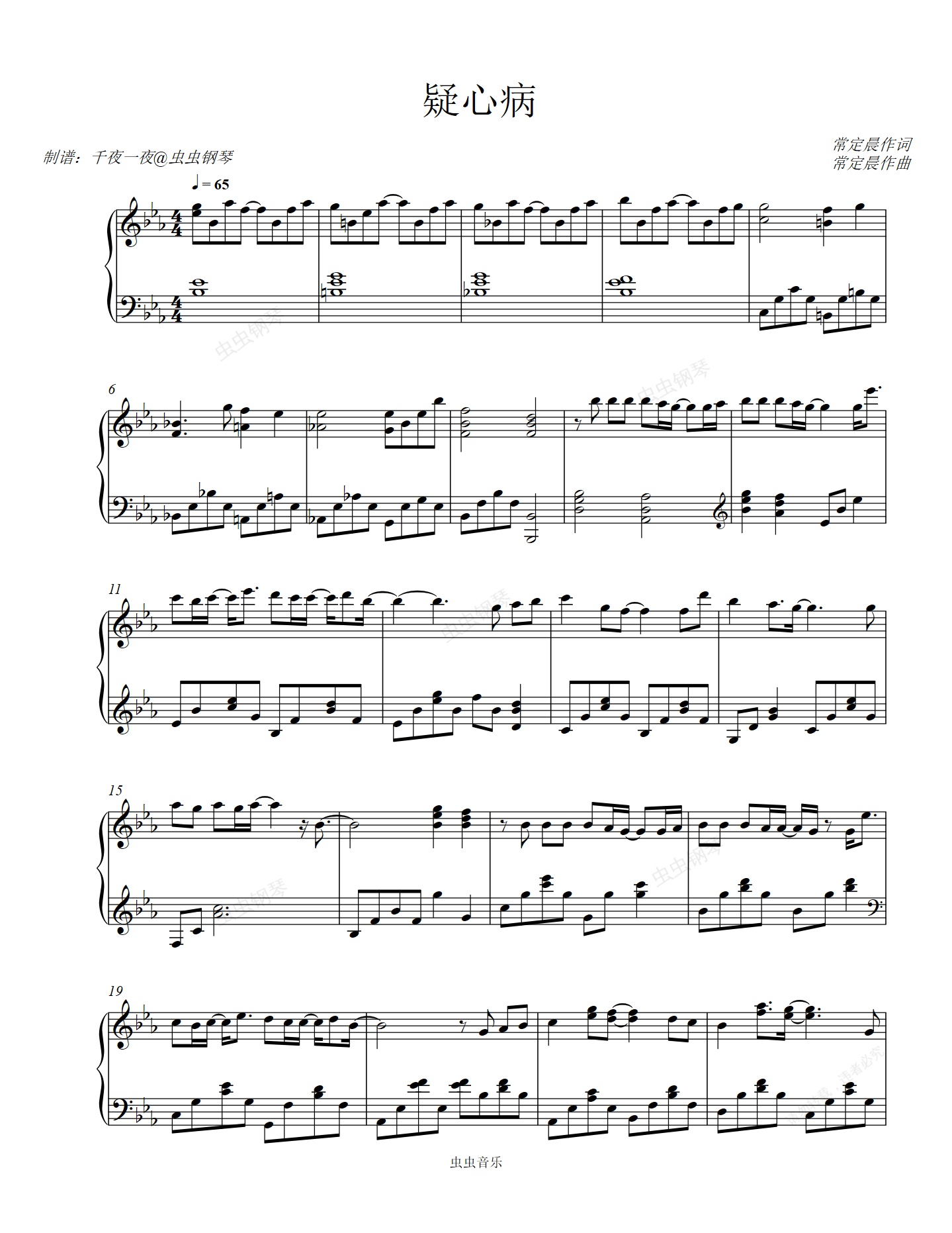 钢琴谱:疑心病|这一句我爱你 我会用一生去守候