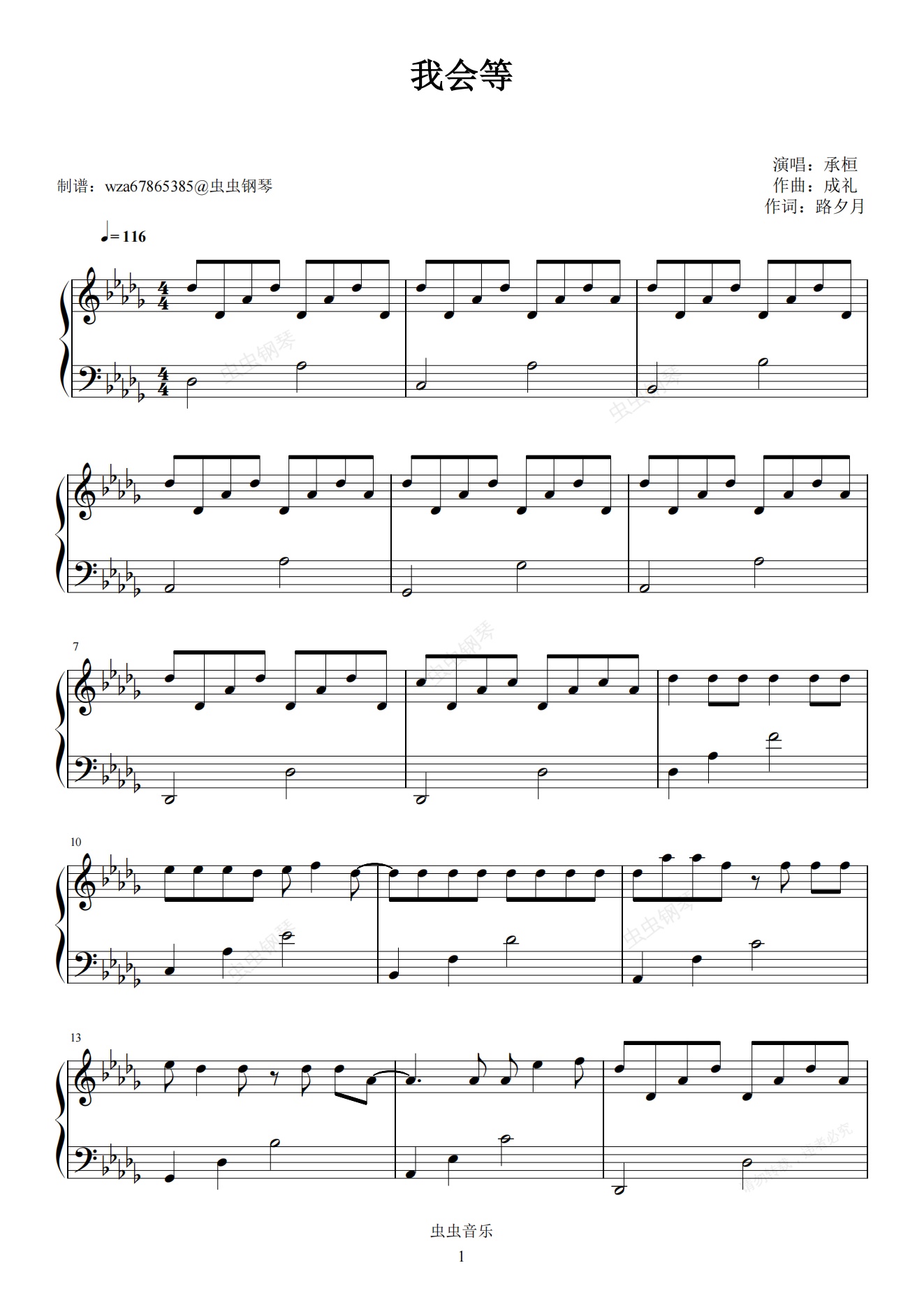 钢琴谱:我会等
