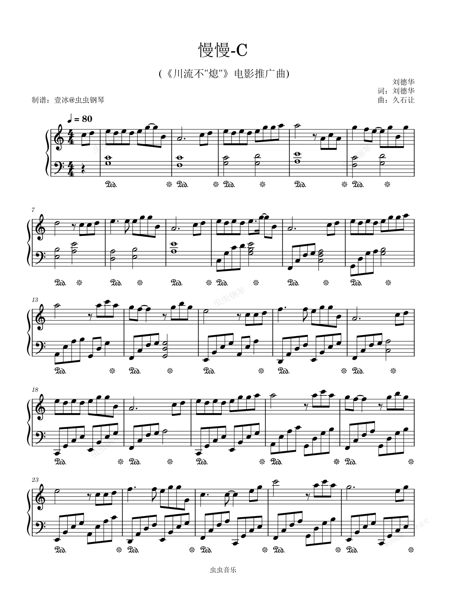 钢琴谱:【影视配乐】慢慢//《川流不"熄"》电影推广曲-C调