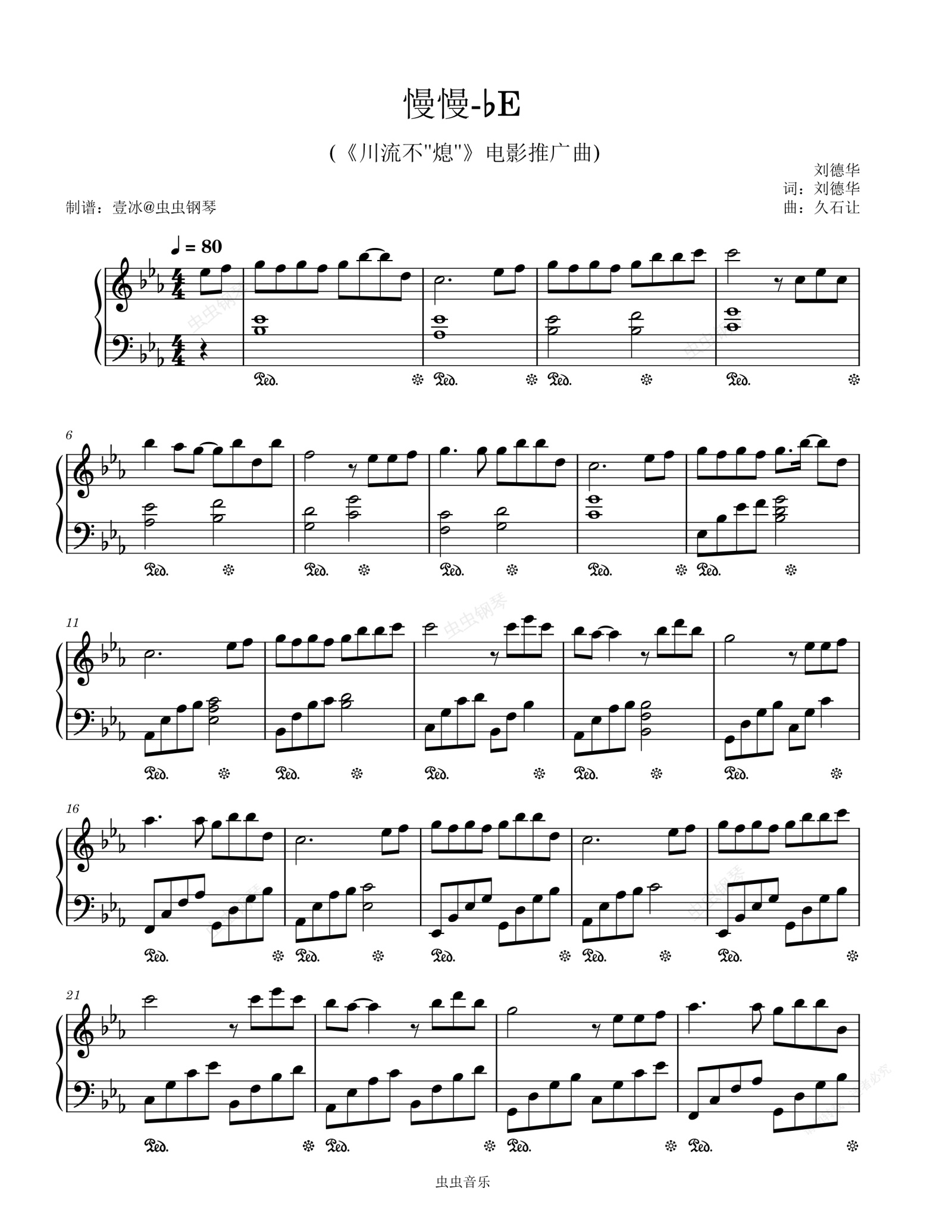 钢琴谱:【影视配乐】慢慢//《川流不"熄"》电影推广曲-原调