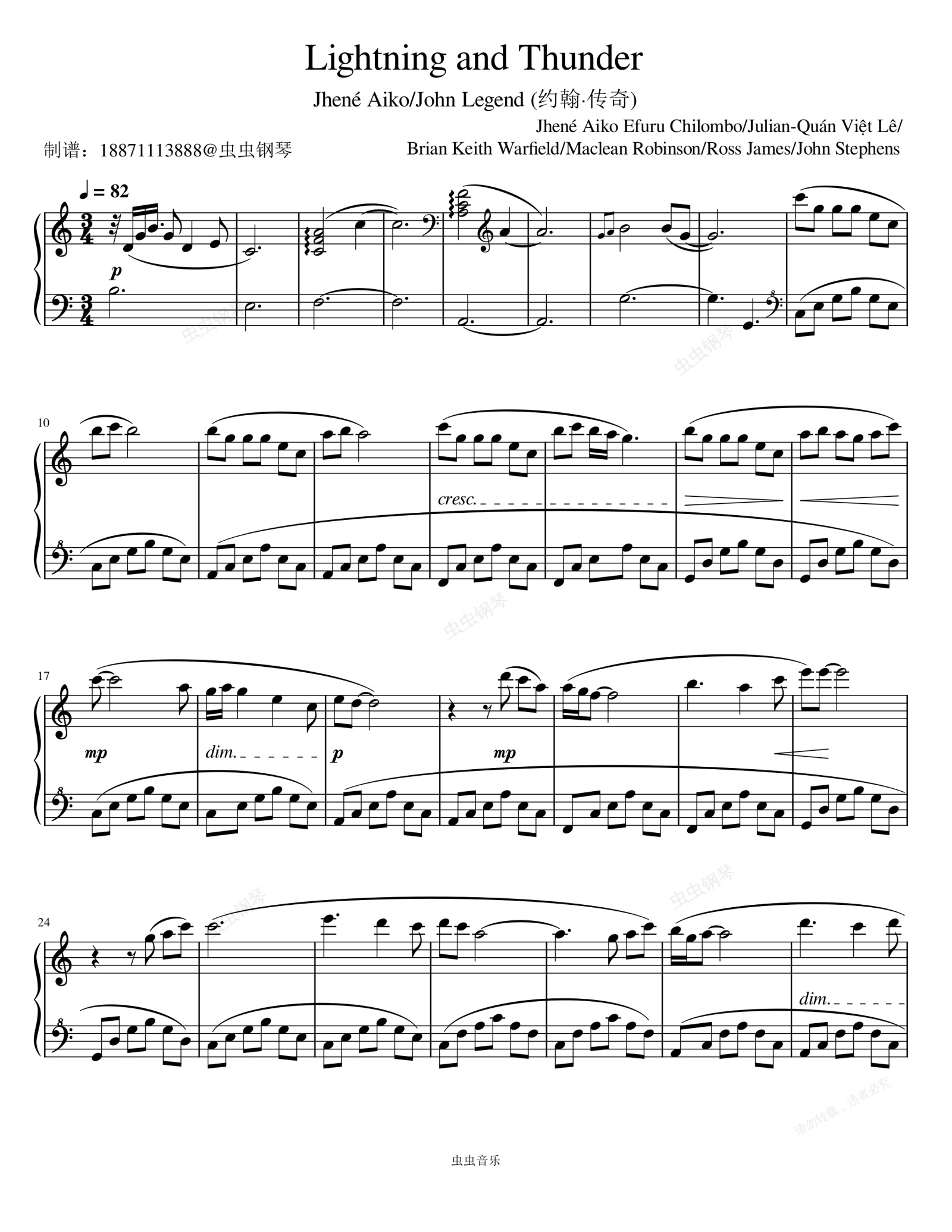 钢琴谱:Lightning & Thunder - Jhené Aiko/John Legend (约翰·传奇)