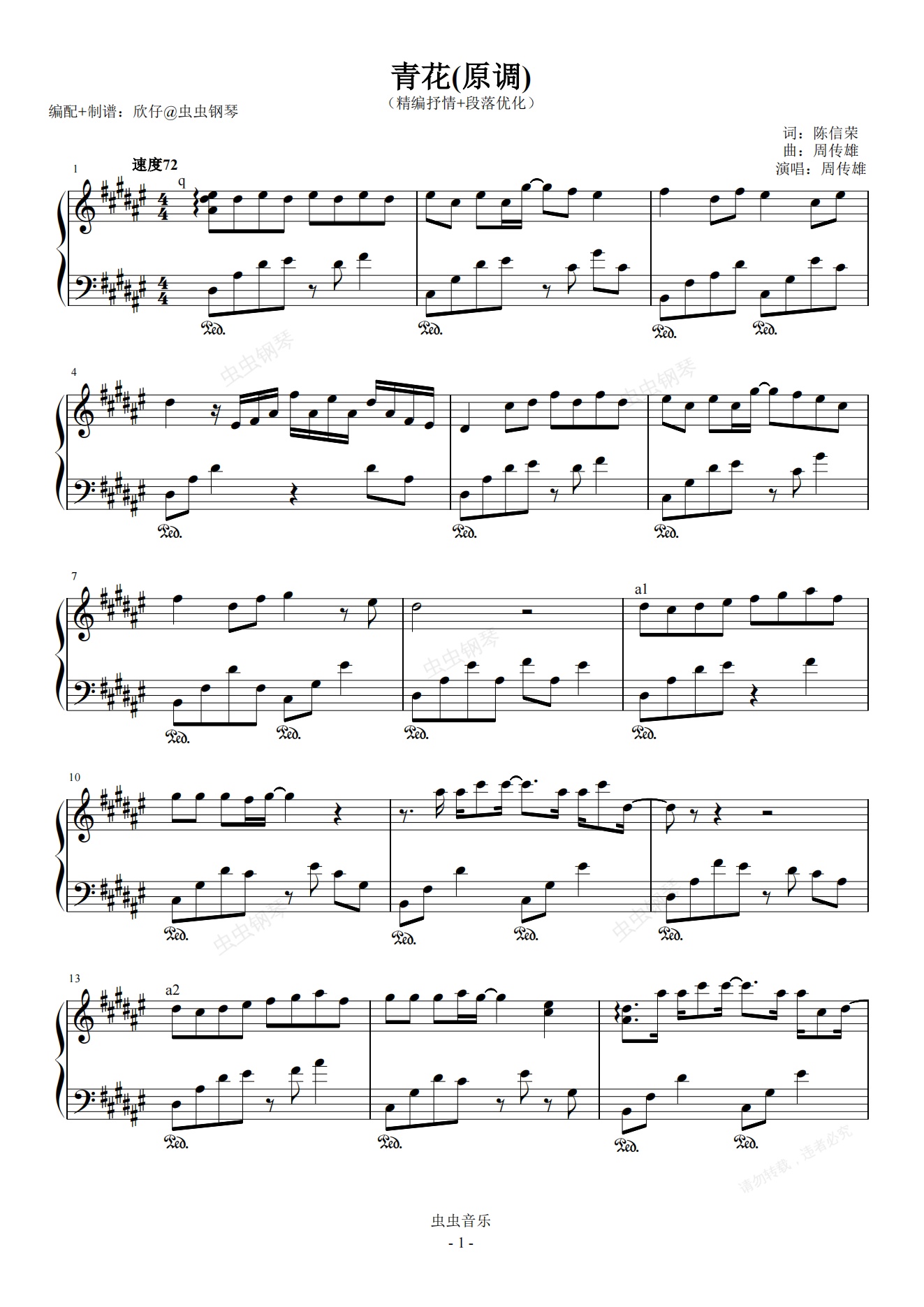 钢琴谱:周传雄-升F《青花》(精编抒情+段落优化)