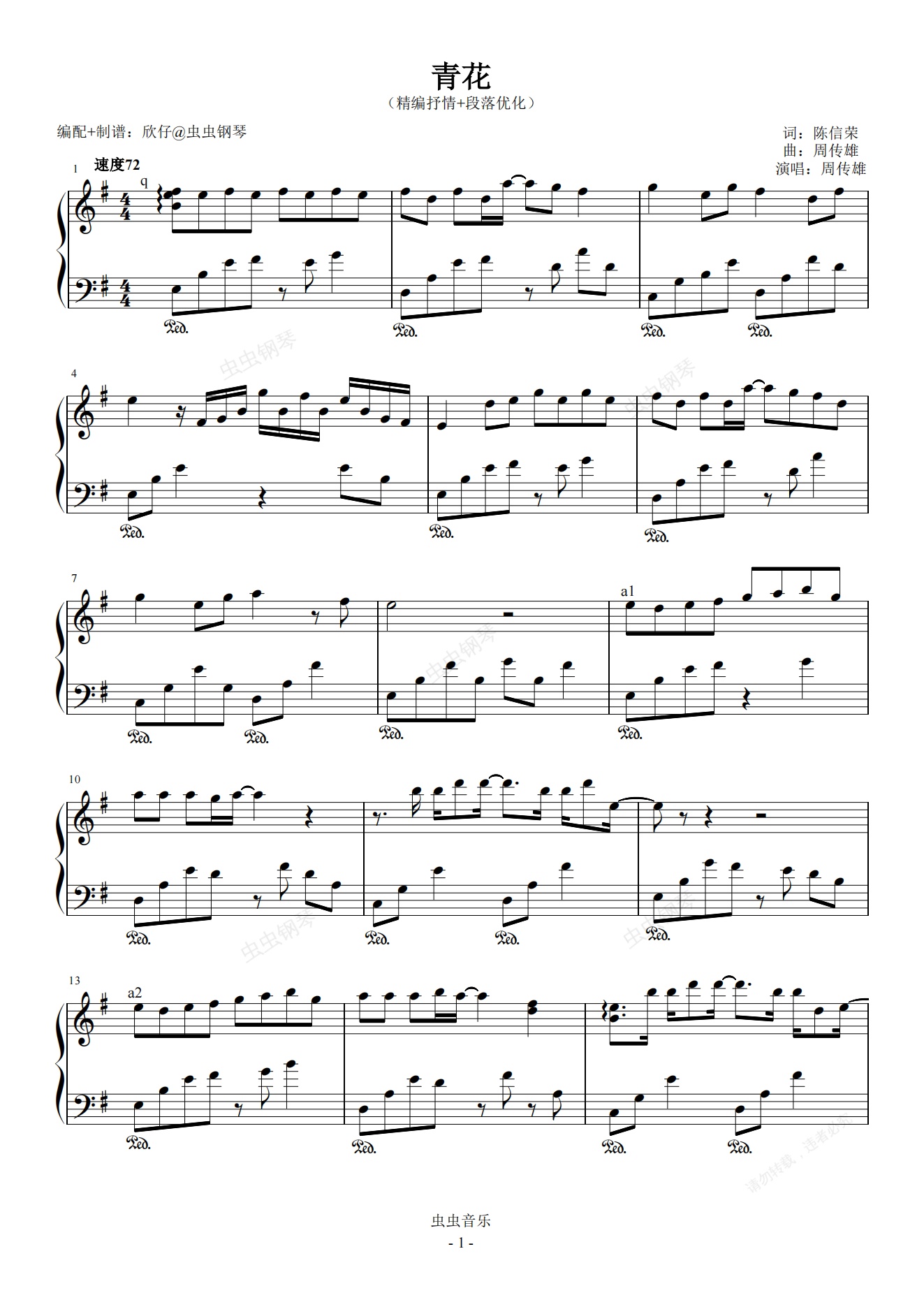 钢琴谱:周传雄-G《青花》(精编抒情+段落优化)