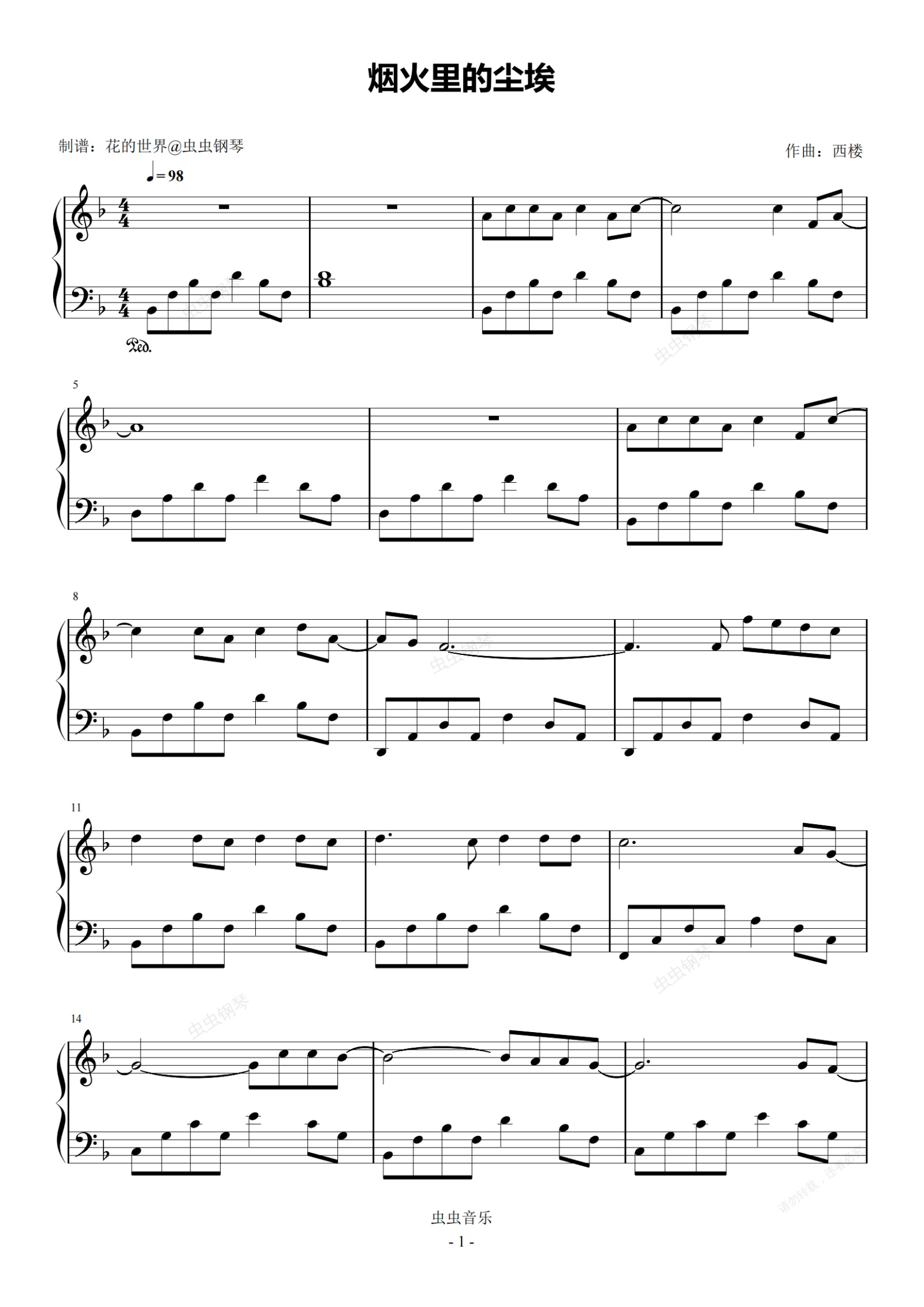 钢琴谱:烟火里的尘埃 原调简易版 华晨宇