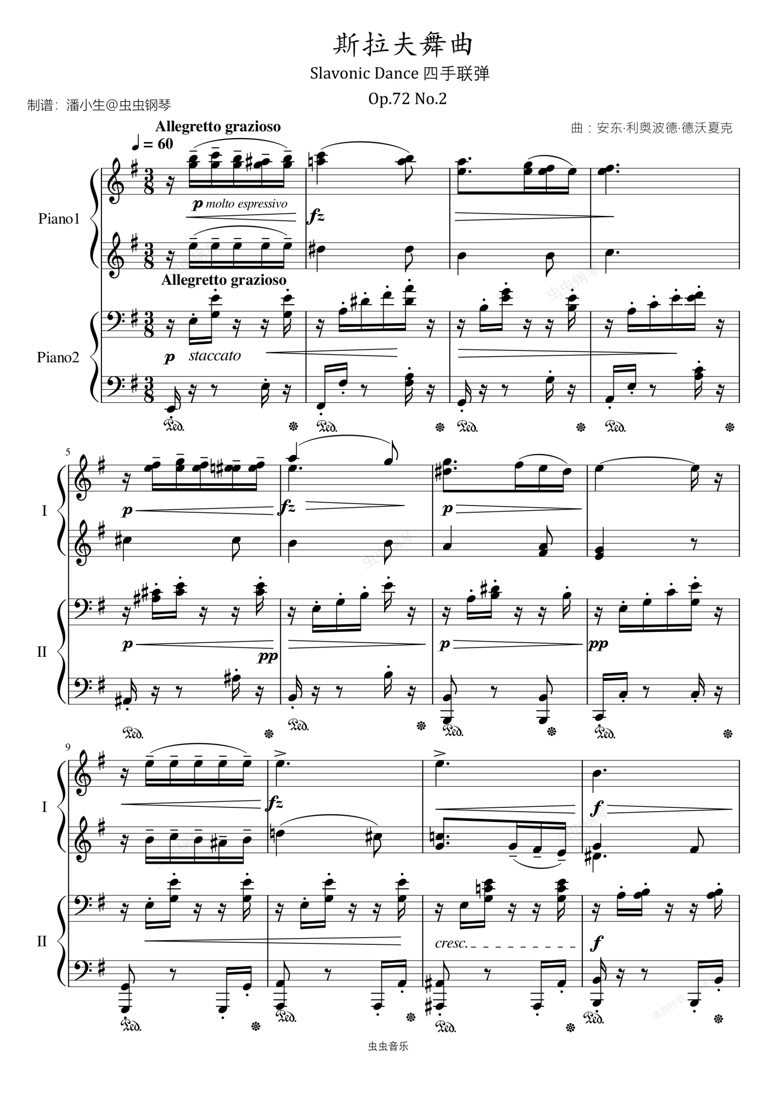 钢琴谱:Slavonic Dance 斯拉夫舞曲 Op.72 No.2  钢琴四手联弹 德沃夏克
